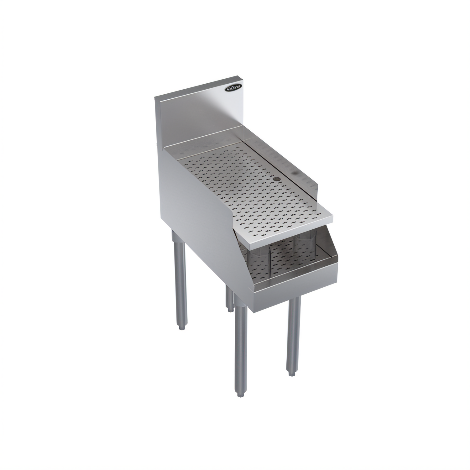 Royal Series Underbar Recesssed Drainboard, free standing, 12"W x 24"D, removable perforated drainboard insert, stainless steel top, front, & sides, stainless steel legs with adjustable thermoplastic bullet feet, NSF