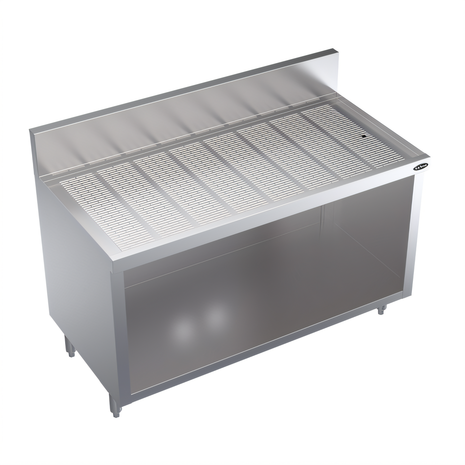 Model KR24-S48 • Open Cabinet Base • NSF CertifiedGive your bar staff extra elbow-room for glass drying and supply storage with the Krowne Royal Series 48" Underbar Drainboard. Crafted entirely from heavy-duty stainless steel, this unit pairs an embossed drainboard top with a spacious, open-front cabinet base—delivering the durability, sanitation, and workflow efficiency today’s high-volume bars demand.