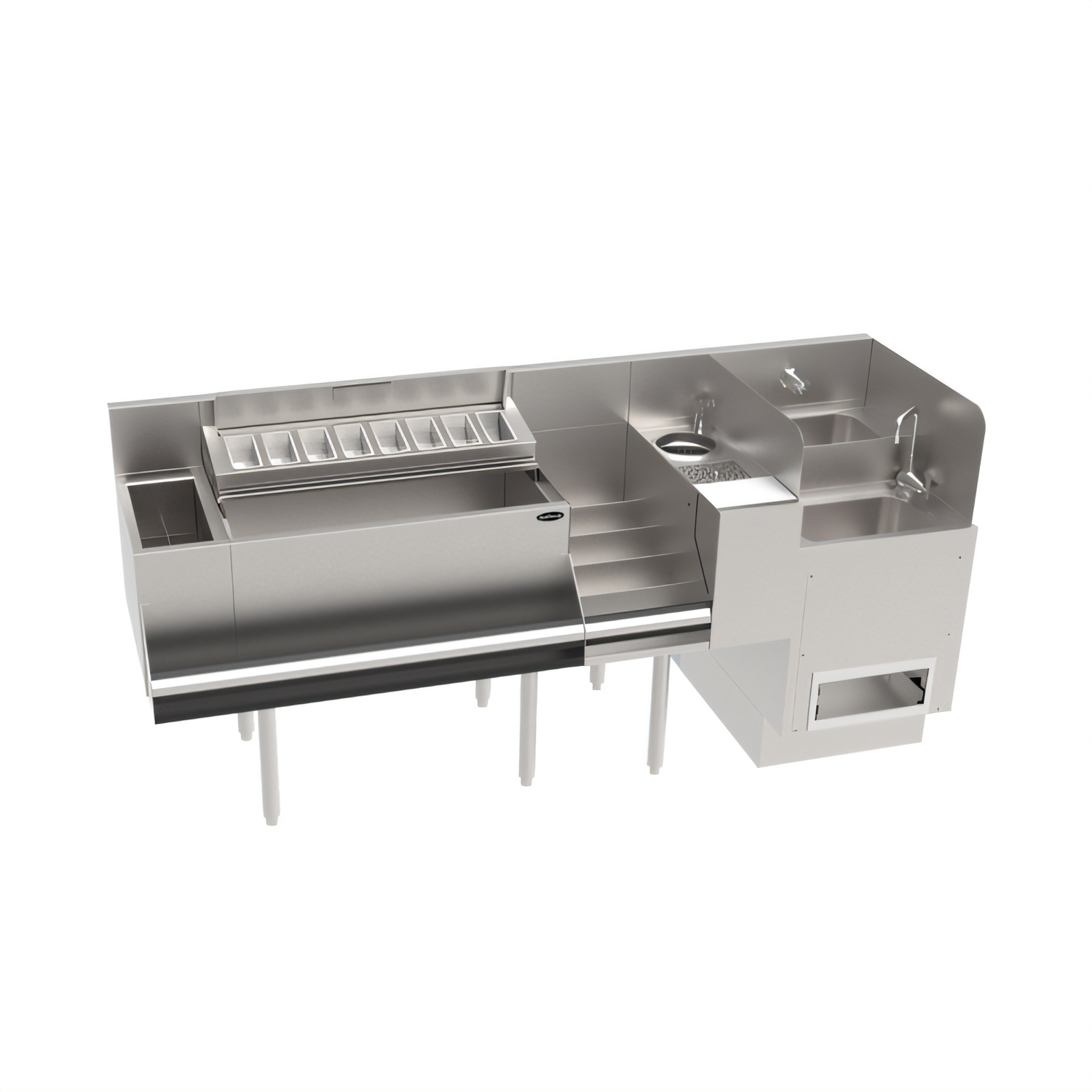 - Optimized Workflow: 8" insulated bottle section → 30" ice bin → 12" five-step liquor display → 8" speed station → 18" dual-bowl hybrid sink.