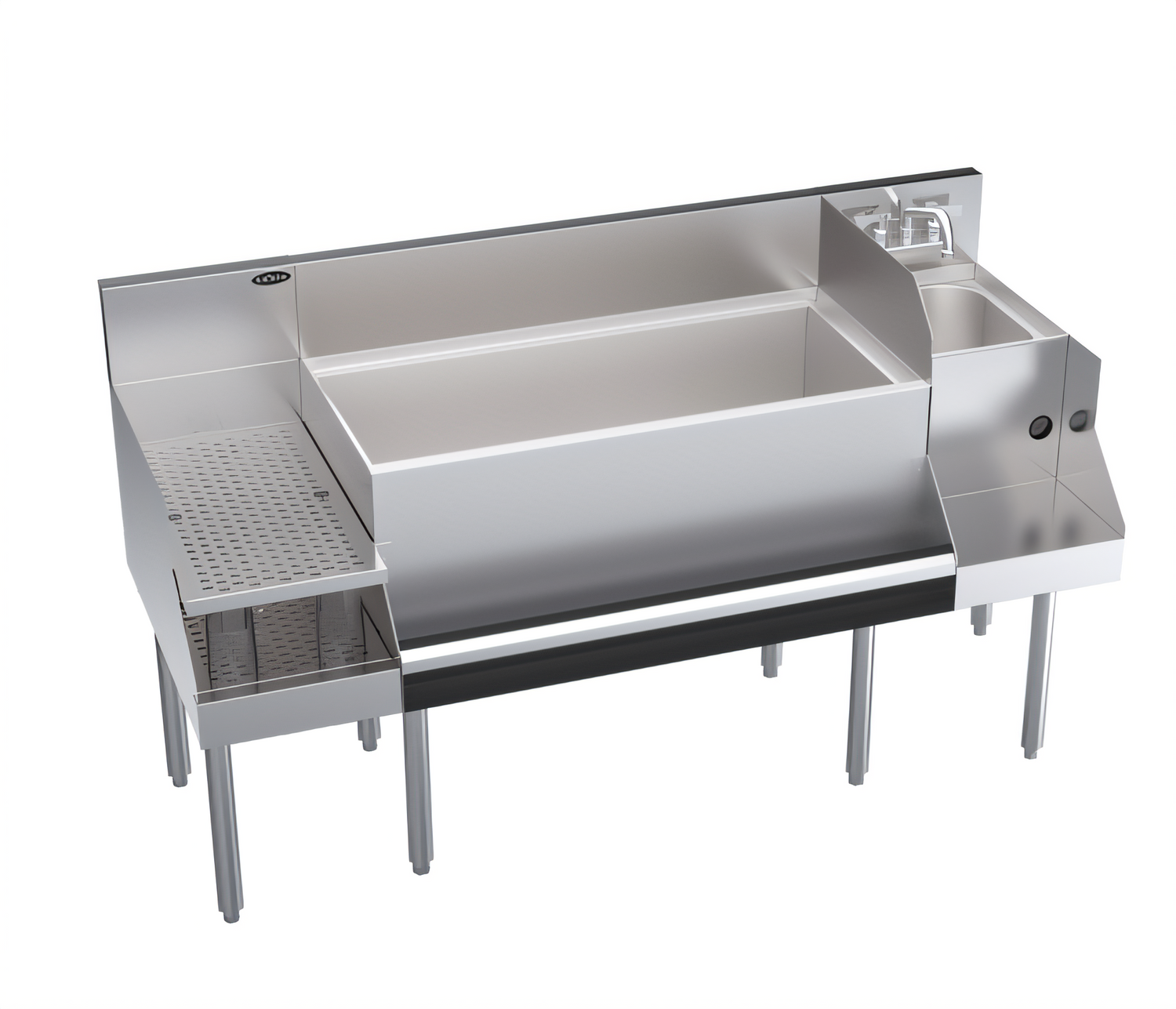Model KR24-W60B-10 | Recessed Drainboard with Blender StationTransform any bar into a high-efficiency service hub. This all-in-one workstation combines a 36" ice bin with a built-in 10-circuit cold plate, a recessed drainboard, and a dedicated blender dump sink—delivering everything your bartenders need within a compact 60" footprint.