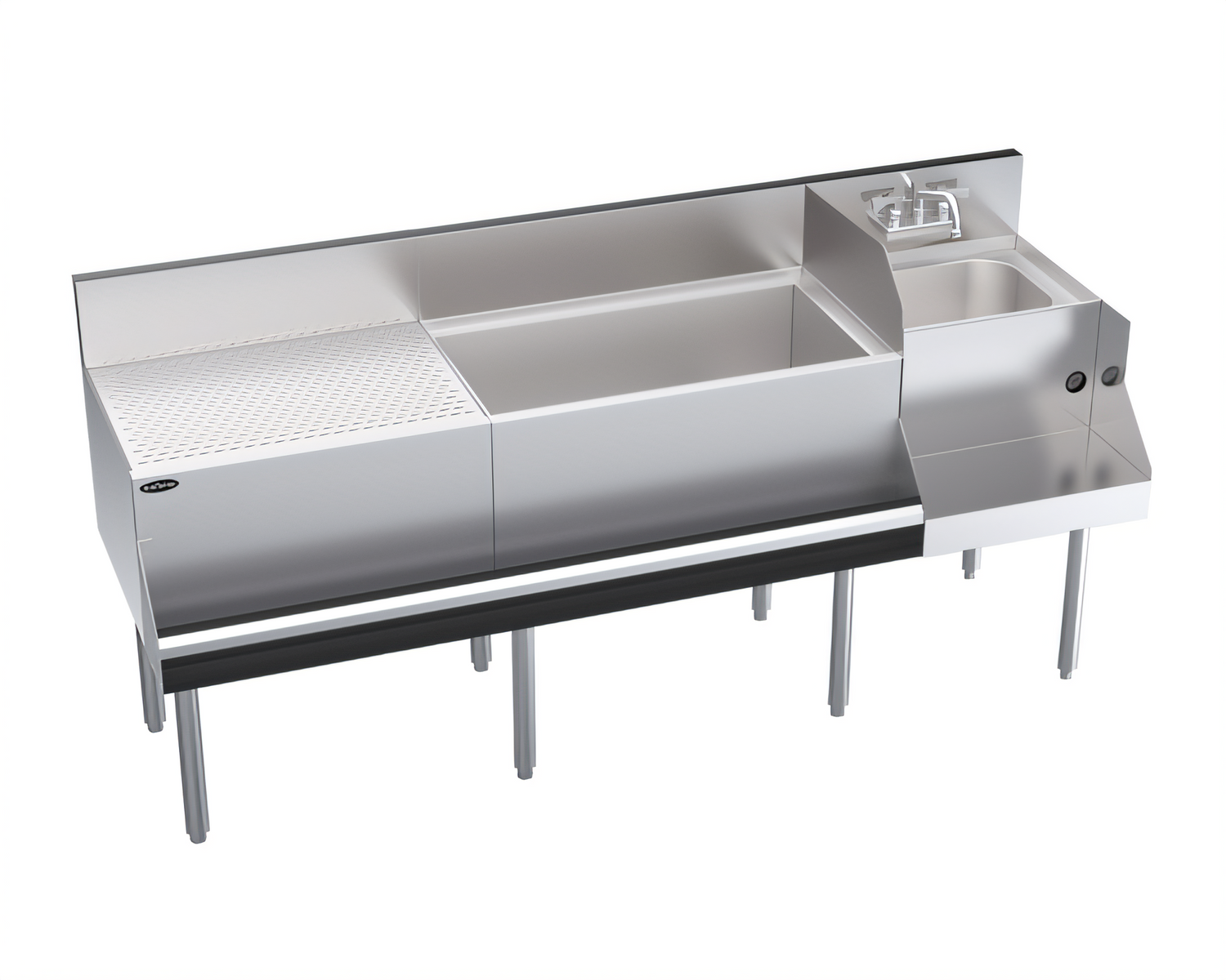 by Krowne Metal – Model KR24-W72A-10Give bartenders everything they need—right where they need it. Krowne’s Royal Series 72" workstation packs an ice bin, 10-circuit cold plate, blender dump sink, speed rail and drainboard into a single, NSF-listed underbar unit that maximizes speed and minimizes footprint.