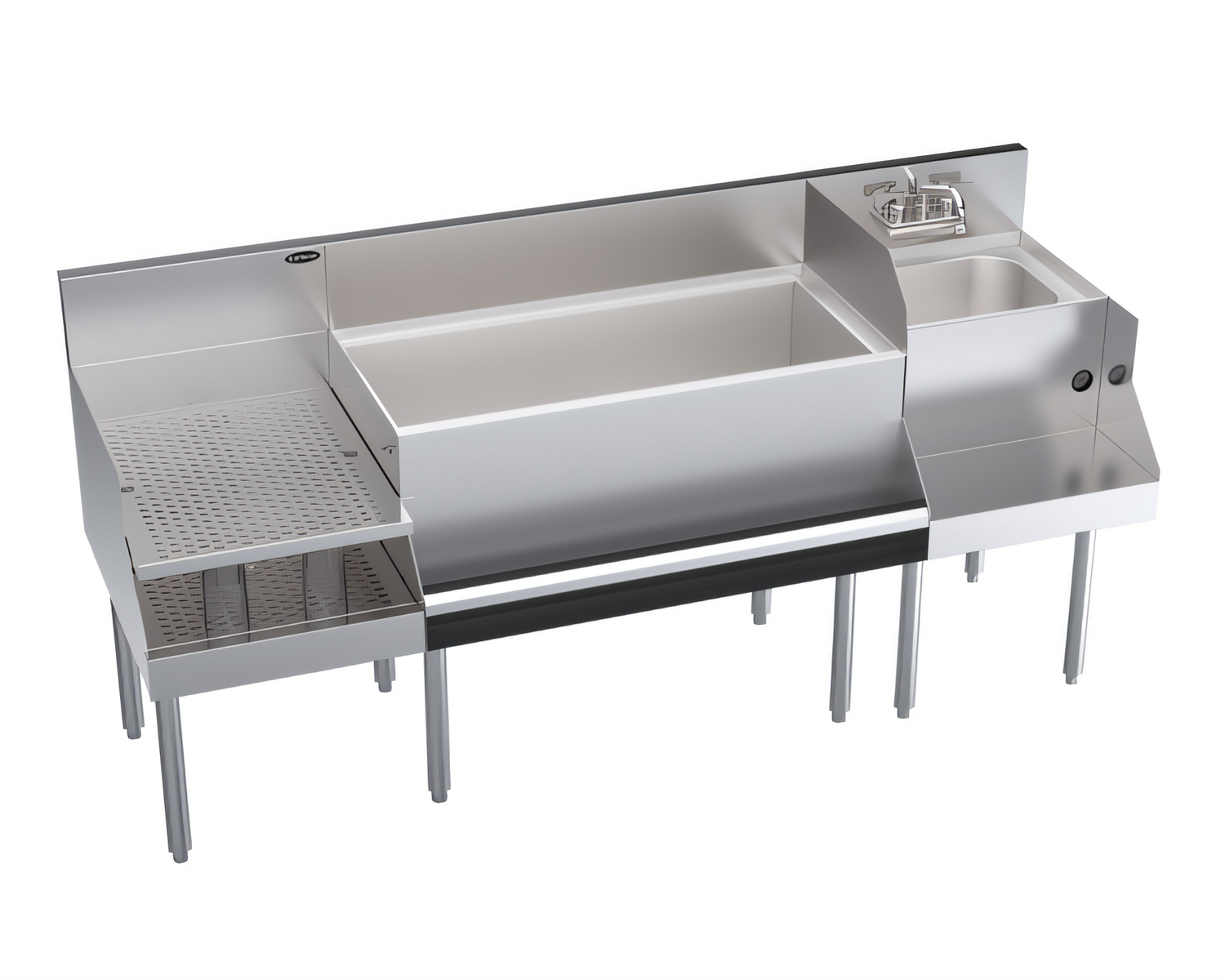 - 18" Recessed Drainboard: Work surface sits ¾" below rim, keeping glassware secure and water off the bar top.