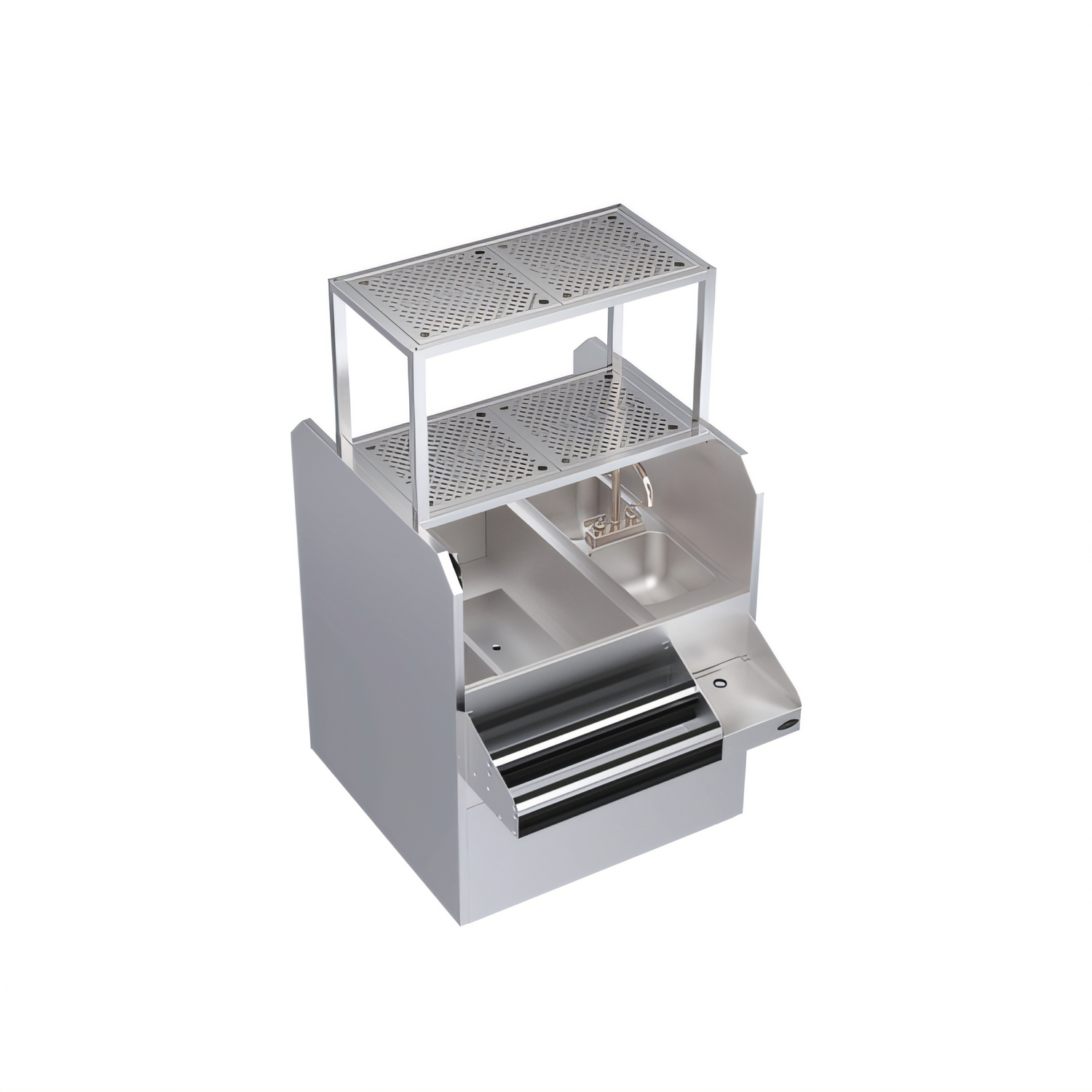 - (2) 10" × 14" × 7" dump sinks on the right side with 1-½" drains for rapid glass rinsing.