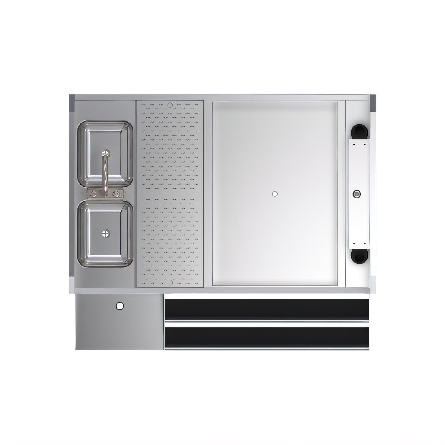Model KRPT-54ARP-10 • Right-Side Ice Bin • NSF ListedBuilt for high-volume bars that refuse to compromise on speed or sanitation, this all-in-one workstation delivers ice, soda, sinks and speed rail service in just 54 inches of frontal space. From the 10-circuit cold plate to the built-in blender shelf, every detail is engineered to keep bartenders moving and cocktails flowing.