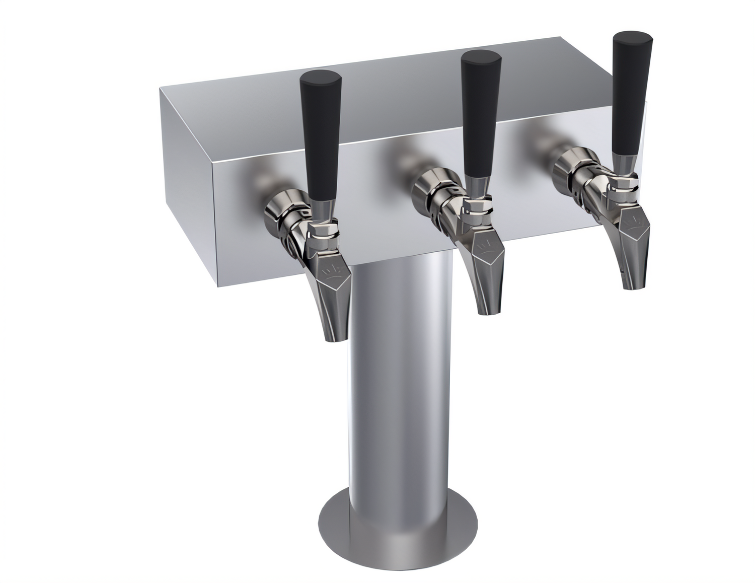 Krowne T-Head Tower, three faucets, handles and faucets not included, 12" long box, glycol cooled, brushed stainless steel finish