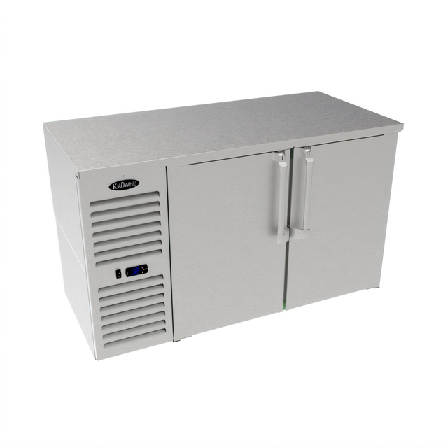 Krowne Model LS52 – 2-Section, Side-Mounted Self-ContainedDesigned for bars, clubs and restaurants that need full-size storage in tight spaces, the Krowne LS52 sits only 29" high (30" with optional 1" stainless top) while delivering a generous 52 inches of refrigerated capacity. DynamicChill 360° airflow, an eco-friendly R290 system and a stainless interior keep beverages ice-cold and ready to serve.