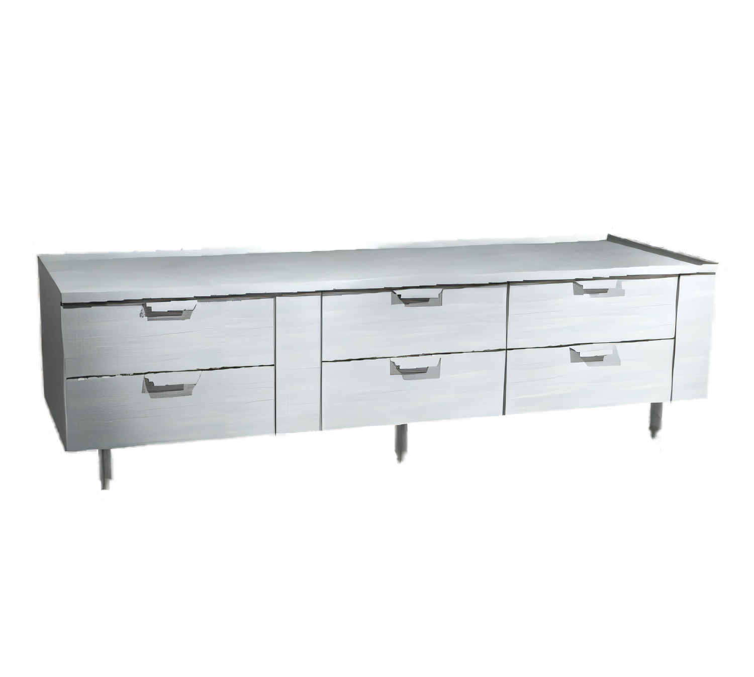 - Three-section base with 6 refrigerated drawers (2 per section)