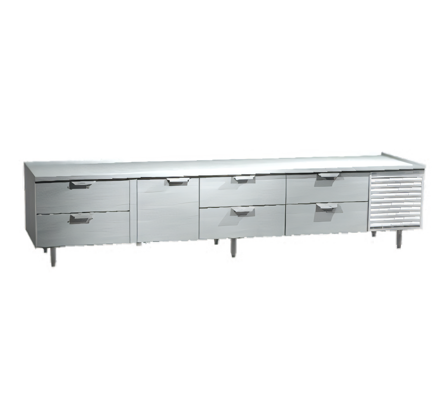 4-section | 1 solid door & 6 self-closing drawers | Self-contained, side-mounted refrigerationBuilt in Detroit for operators who demand rock-solid reliability, the La Rosa 3216-SF marries heavy-duty cold storage with a chef-ready work surface. At 116 inches long and finished entirely in 304 stainless steel, this low-profile reach-in base keeps frozen ingredients at –5 °F to 0 °F right where you prep, plate, and cook.