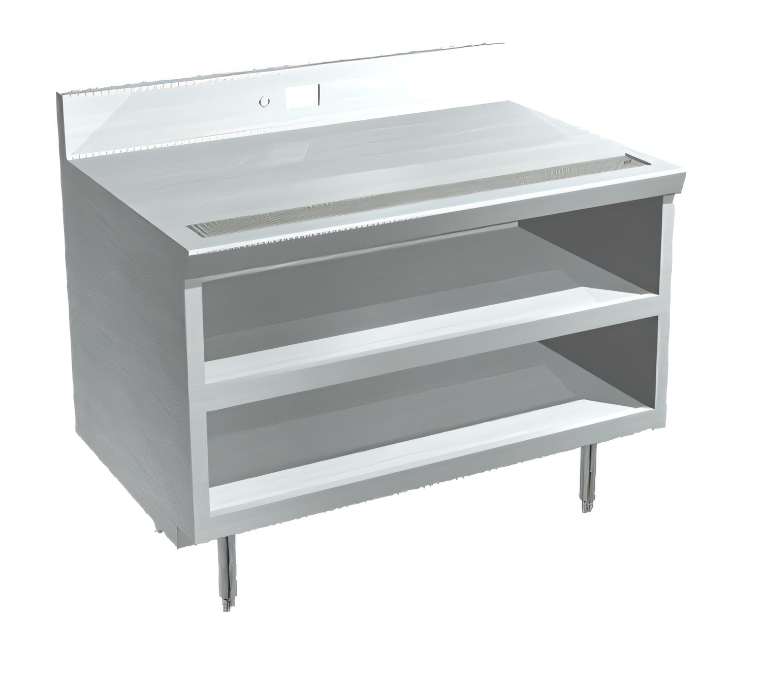 - Open cabinet base with intermediate & bottom shelves – 22 ga 304 stainless, marine edge front & rear turn-up