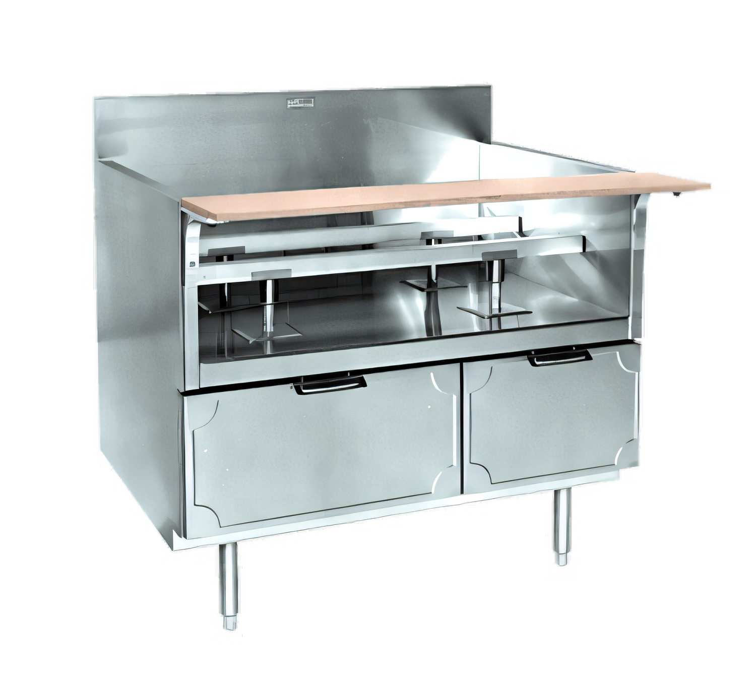 - Removable equipment support rails allow custom positioning of countertop appliances.