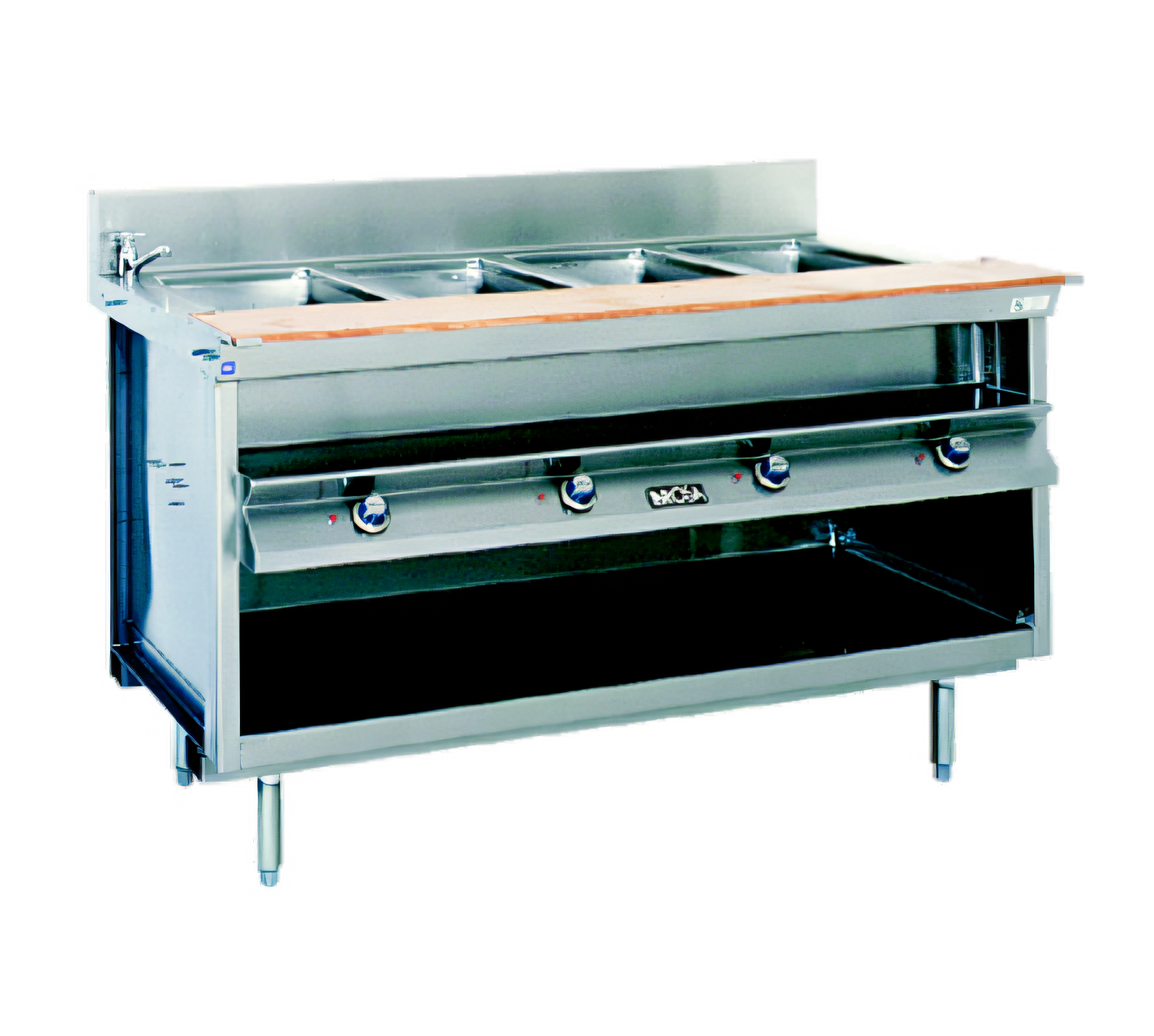 - Fully assembled hot food table with faucet, drains & valve manifold installed