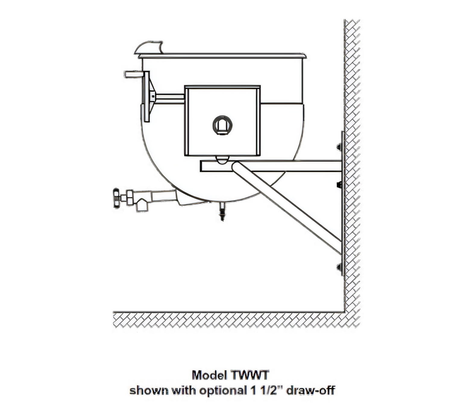 - TWWT-30 2/3-jacketed tilting kettle with wall bracket and control console