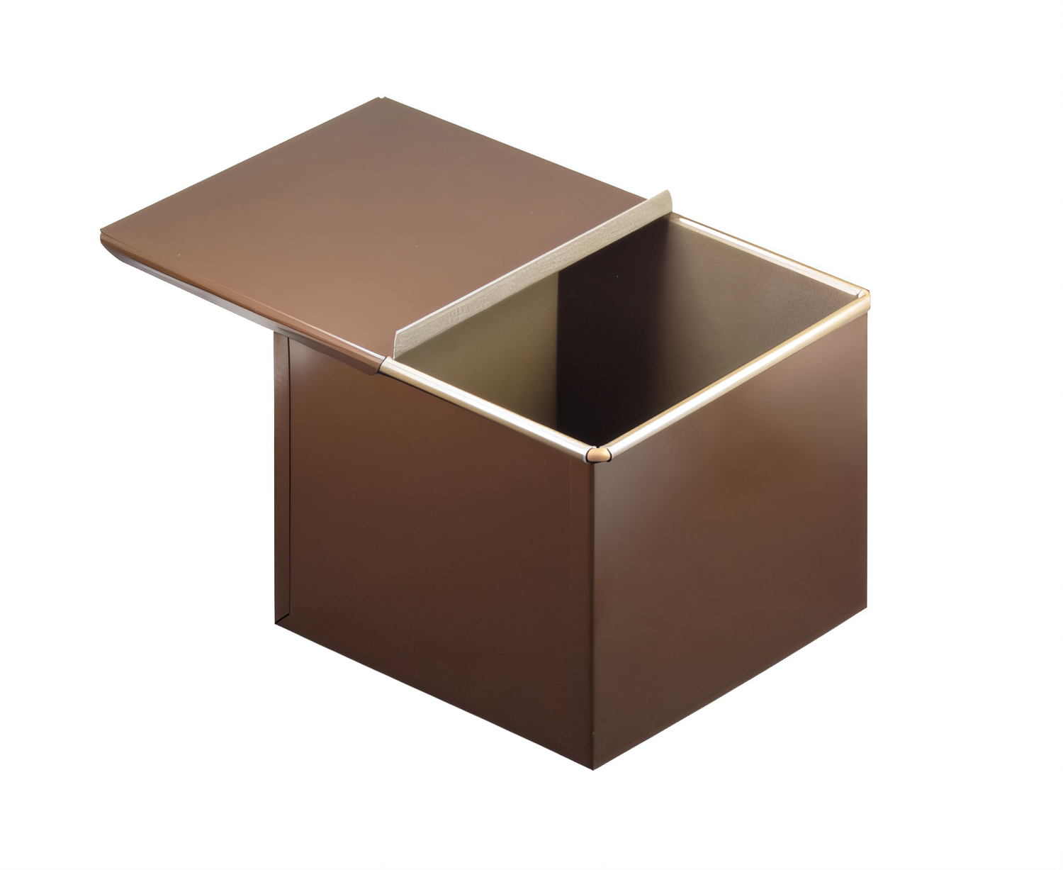 Bread mould, 8"W x 8"D x 7.50"H, non-stick, with sliding lid, brown