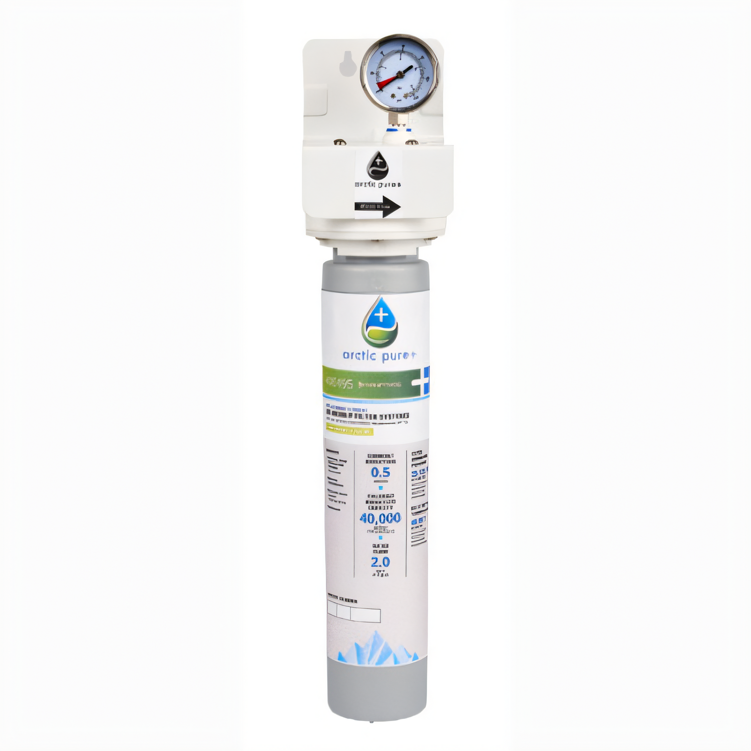 Arctic Pure® Plus Primary Water Filter Assembly, includes head, shroud, hardware, mounting assembly, & (1) filter cartridge, 40,000 gallon capacity, 1,001-2,500 lbs./ice per day