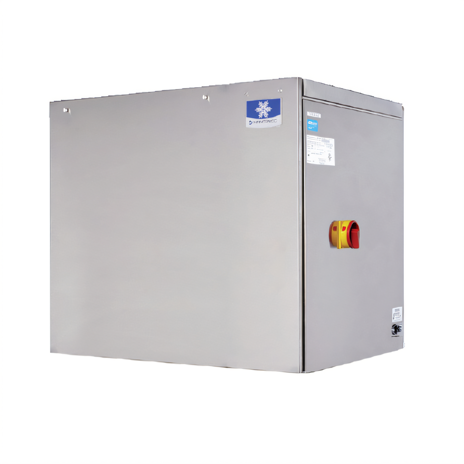 Indigo NXT™ Series Marine Ice Maker, cube-style, water-cooled, self-contained condenser, 30"W x 24-1/2"D x 21-1/2"H, production capacity up to 703 lb/24 hours at 70°/50° (600 lb AHRI certified at 90°/70°), isolation switch, removable top cover, back & sides, stainless steel bulkhead, stainless steel exterior, dice size cubes, R410 refrigerant, NSF, cULus