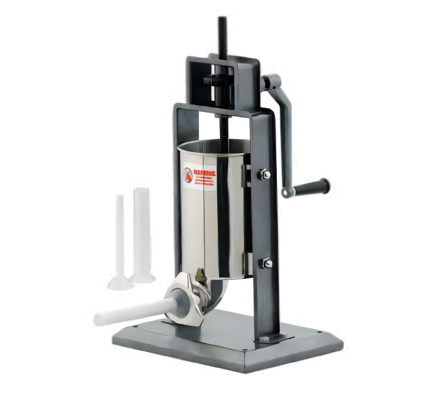 Hand Sausage Stuffer, manual, vertical, 6.6 lb. capacity (3 liter), includes (3) funnels: 1/3", 2/3", and 1" dia., crank handle, epoxy frame, stainless steel tank