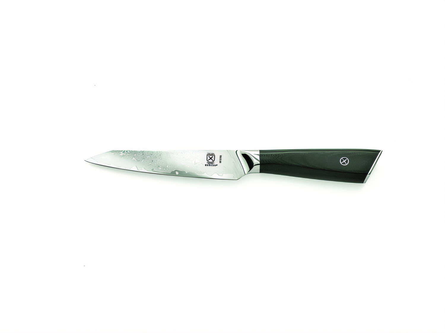 Mercer M13790 5" utility knife — G10 handle, super steel Damascus blade, HRC 62, full tang for precision, durability, and balance.