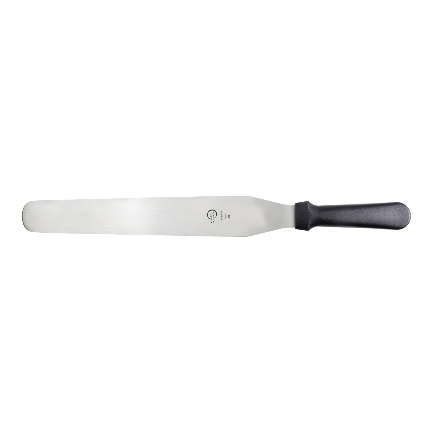 Mercer Cutlery Spatula Straight, 12"L x 1-7/8"W blade, 17" overall length, tapered ground Japanese stainless steel blade, molded slip-resistant black polypropylene handle, carded for retail display, dishwasher safe, NSF