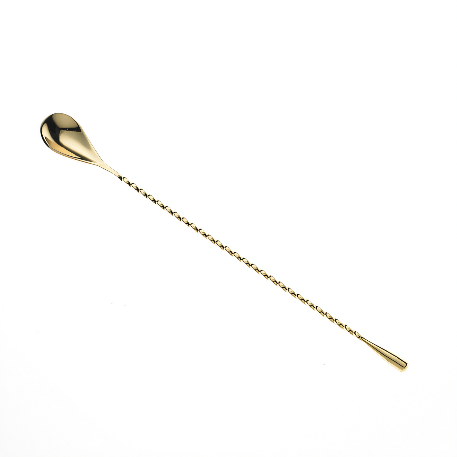 Barfly® Classic Bar Spoon, 11-13/16" (30 cm), weighted teardrop shaped end, twisted stem, one-piece, 18/8 stainless steel, gold-plated finish