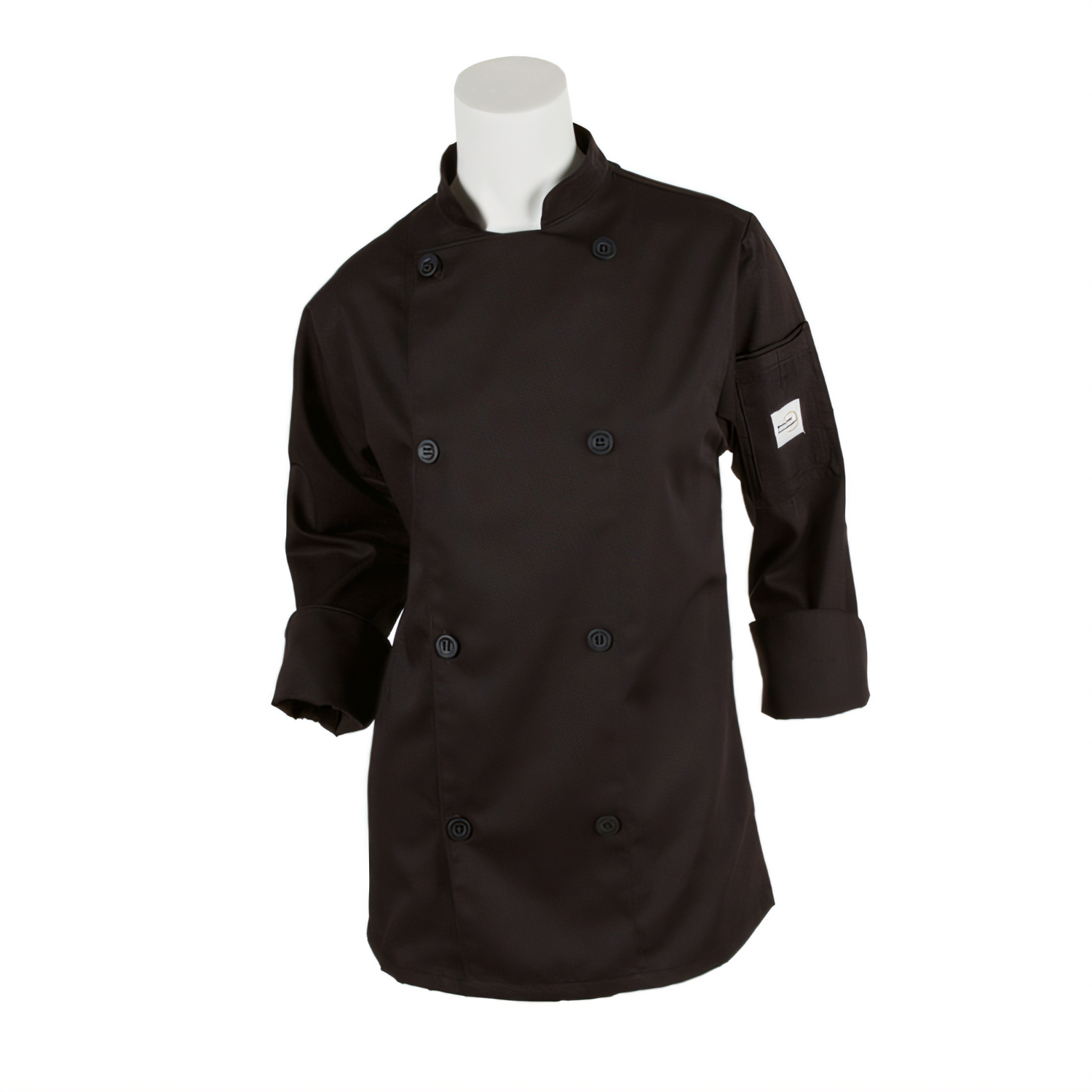 Genesis Women's Chef Jacket, (8) traditional buttons, utility shoulder pocket, center back kick pleat, 65/35 poly/cotton twill, black, 2X