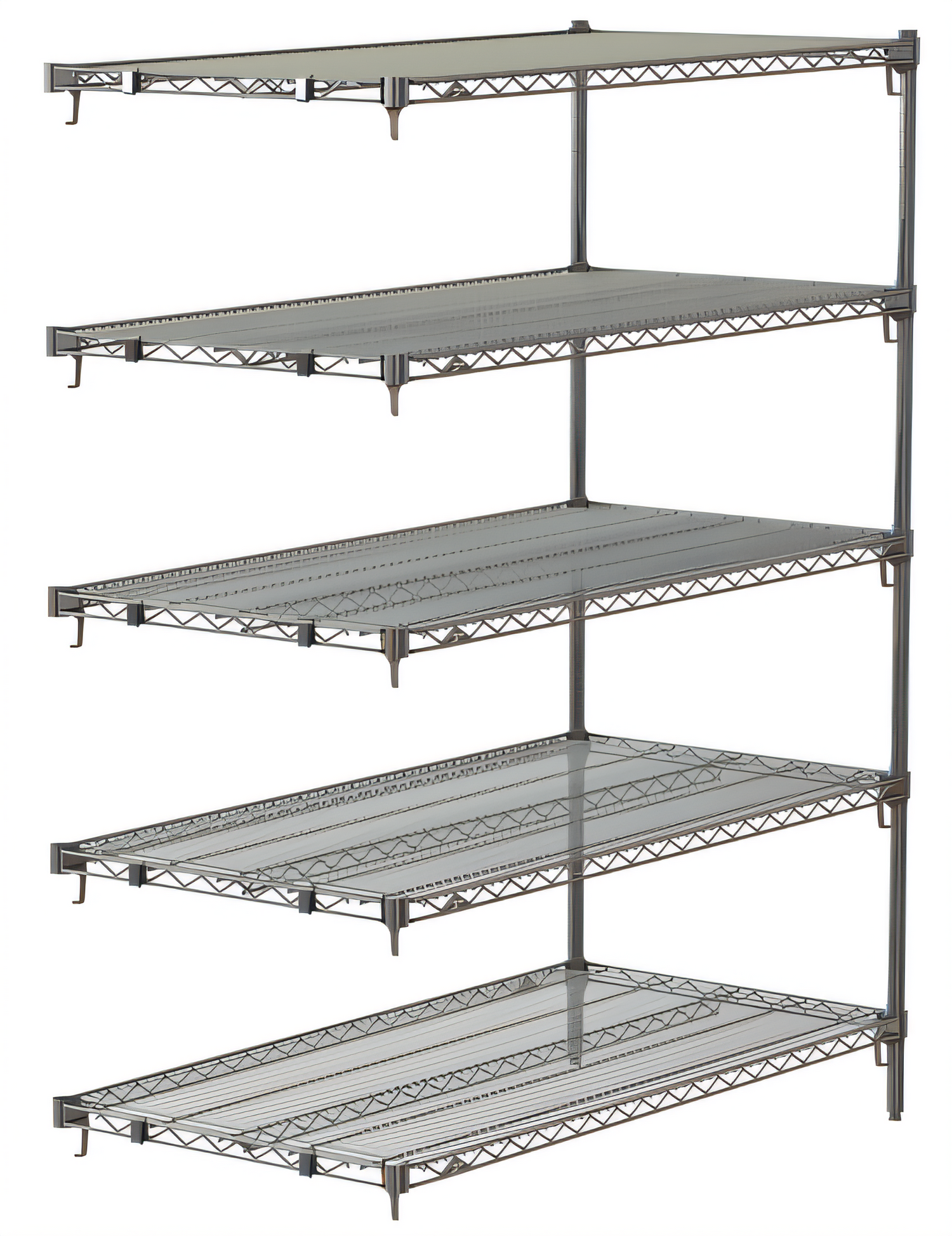 Super Adjustable Super Erecta® Add-On Shelving Unit, 48"W x 24"D x 74"H, (5) wire shelves, (2) posts & (2) "S"Hooks per shelf, chrome plated finish, KD, NSF