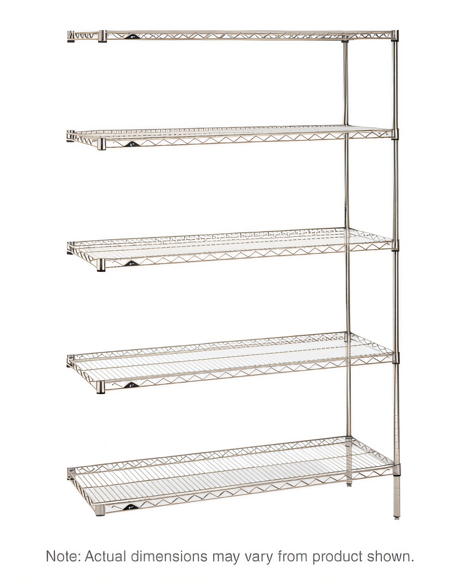 Super Erecta® Add-On Shelving Unit, 30"W x 24"D x 74"H, (5) wire shelves, (2) posts & (2) "S"Hooks per shelf, Super Erecta Brite™ finish, KD, NSF