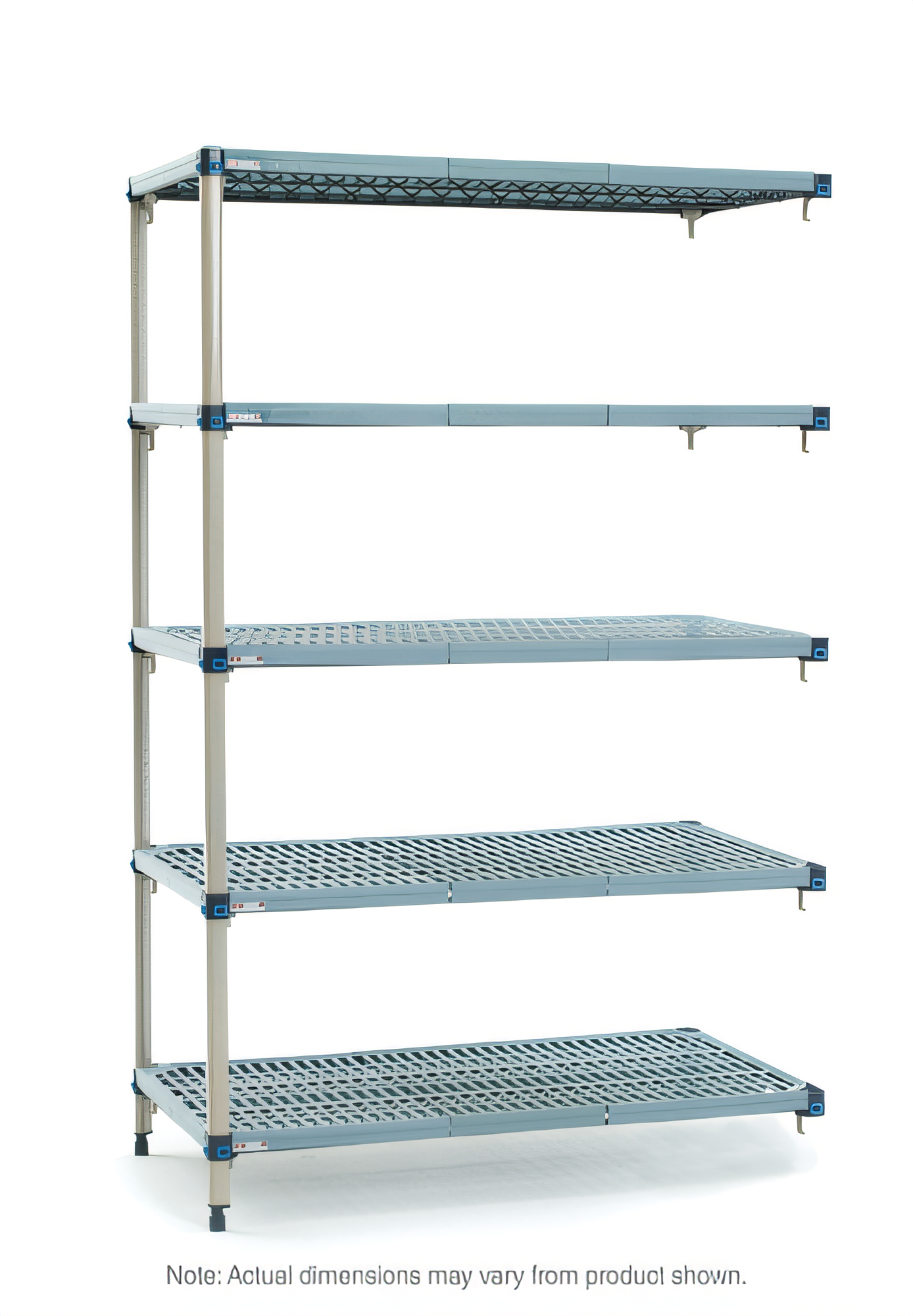 MetroMax® Q Add-On Shelving Unit, 30"W x 21"D x 74"H, (5) quick-adjust shelves with removable polymer open-grid shelf mats and epoxy coated one-piece steel frames, (2) polymer posts, Microban antimicrobial product protection, (2) "S"Hooks per shelf, KD, NSF