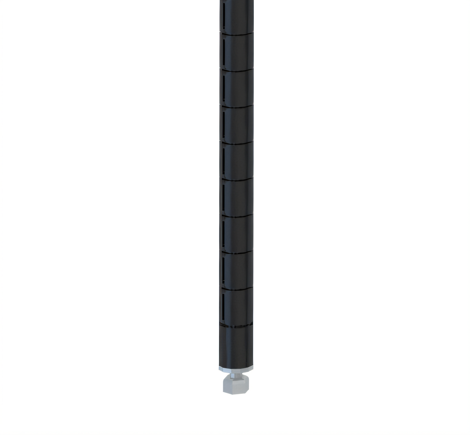 Metro 63PQBL qwikSLOT post: 63-9/16" black epoxy, 1" slot intervals for adjustable shelving, secure snap-in clips for fast, flexible setup.