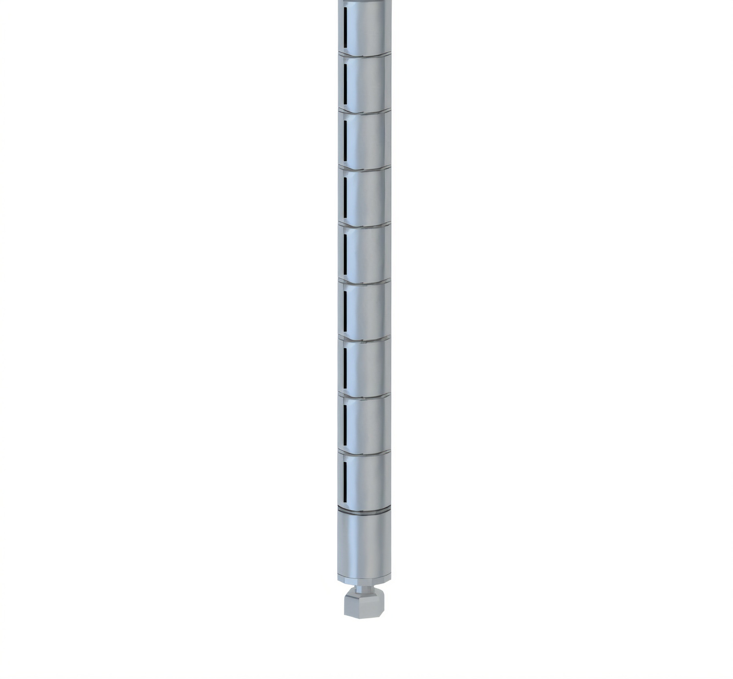 Metro 86PQ qwikSLOT post: 86-5/8" zinc-finish upright with 1" slot intervals and snap-in clip for fast, adjustable shelving and durable utility carts.