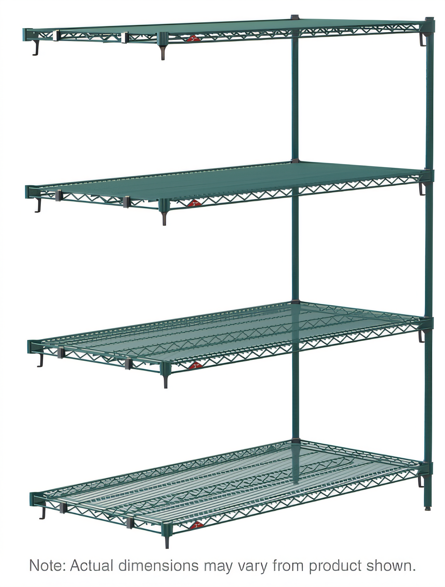 Super Adjustable Super Erecta® Add-On Shelving Unit, 42"W x 21"D x 63 H (4) wire shelves, (2) posts & (2) "S"Hooks per shelf, Metroseal 3™ epoxy-coated corrosion-resistant finish with Microban® antimicrobial protection, KD, NSF