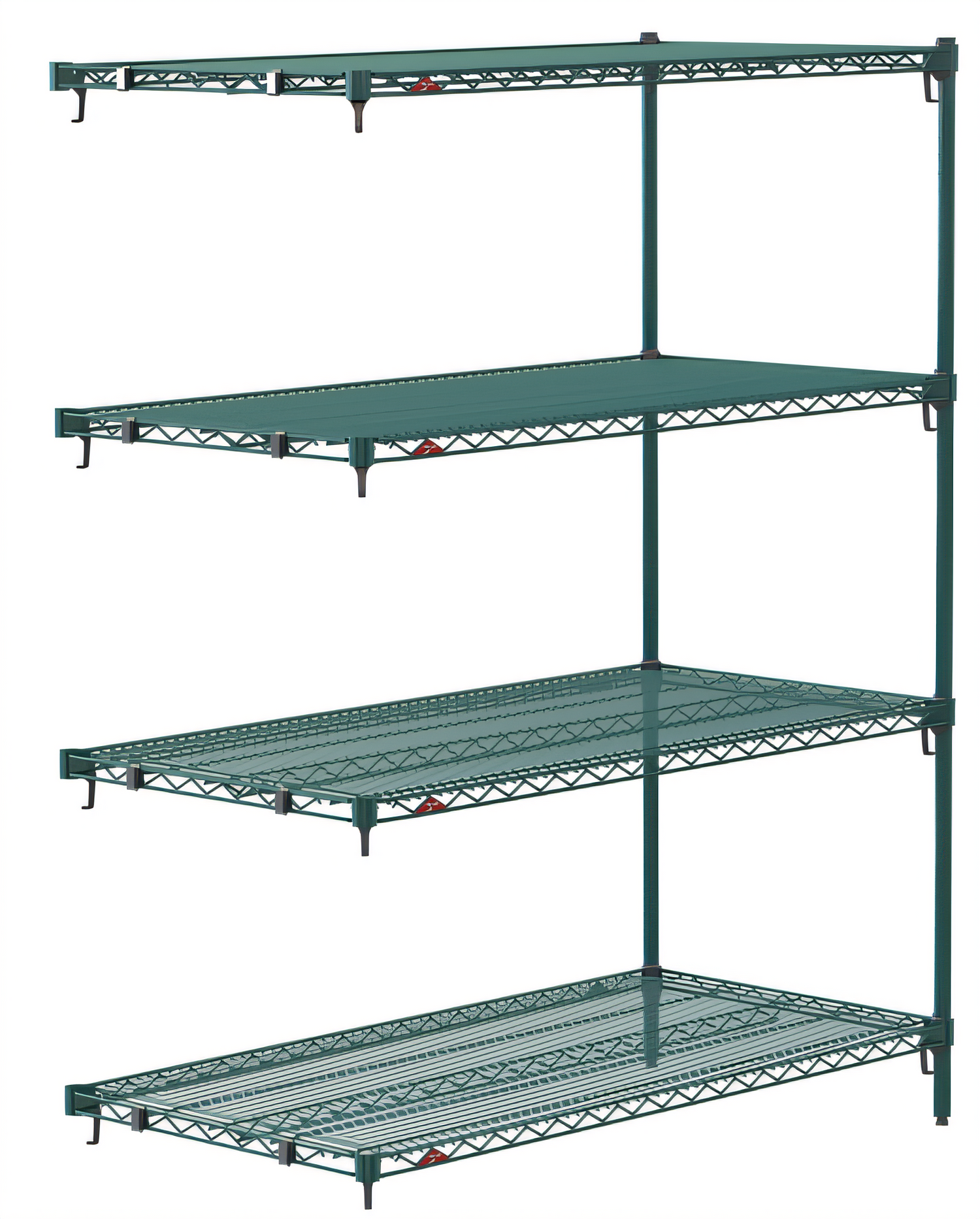 Super Adjustable Super Erecta® Add-On Shelving Unit, 48"W x 24"D x 63 H (4) wire shelves, (2) posts & (2) "S"Hooks per shelf, Metroseal 3™ epoxy-coated corrosion-resistant finish with Microban® antimicrobial protection, KD, NSF