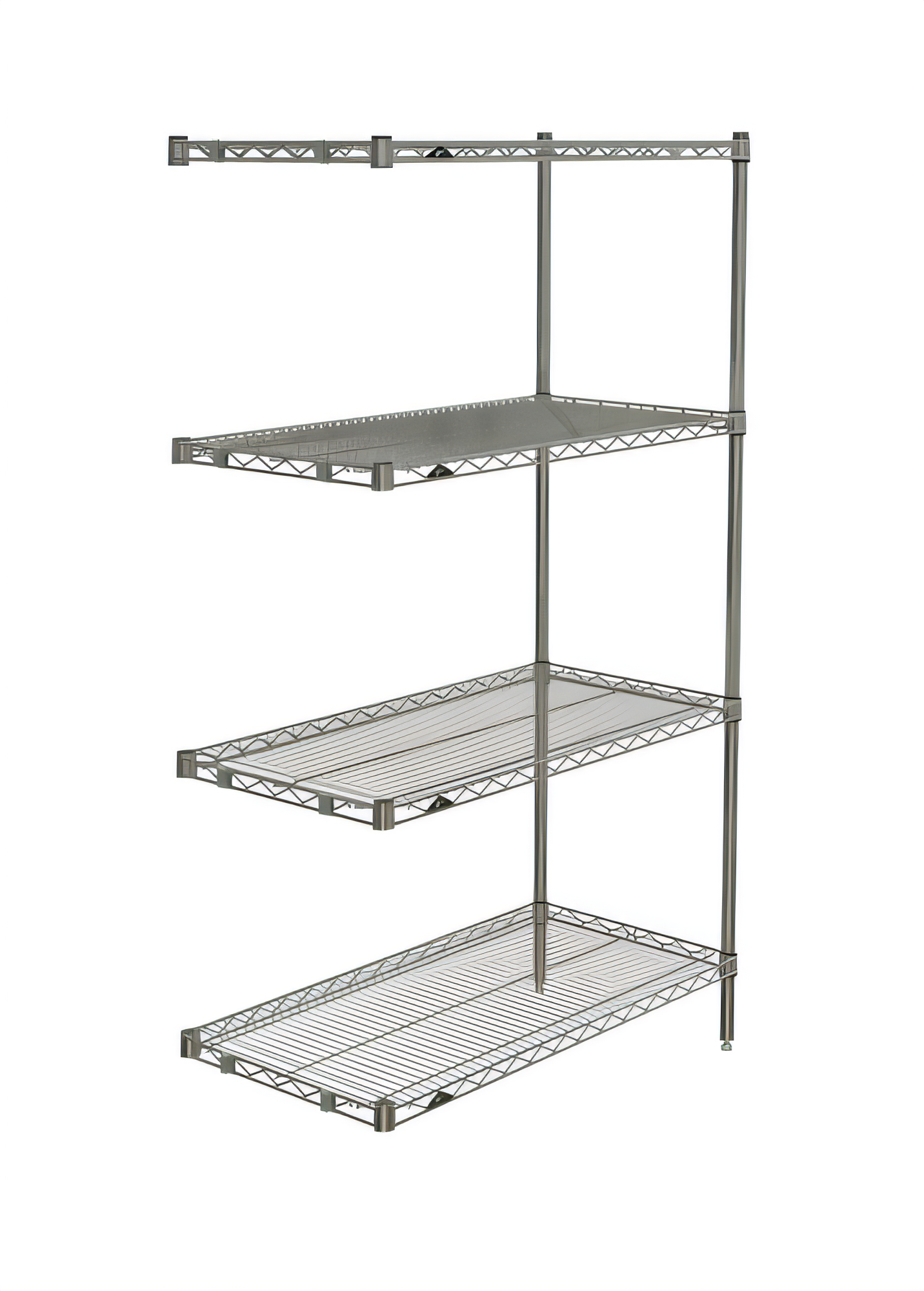 Super Erecta® Add-On Shelving Unit, 36"W x 18"D x 63"H, (4) wire shelves, (2) posts & (2) "S"Hooks per shelf, Super Erecta Brite™ finish, KD, NSF