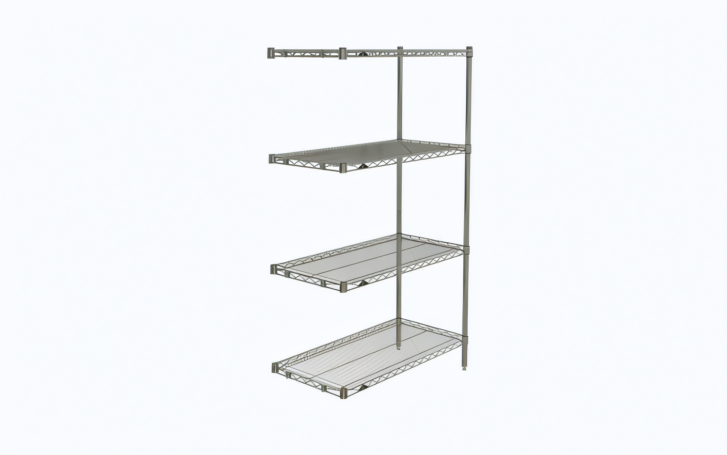 Super Erecta® Add-On Shelving Unit, 36"W x 18"D x 63"H, (4) wire shelves, (2) posts & (2) "S"Hooks per shelf, chrome plated finish, KD, NSF