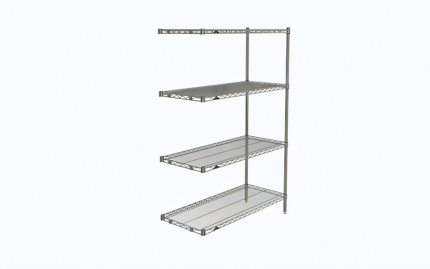 Super Erecta® Add-On Shelving Unit, 42"W x 18"D x 63"H, (4) wire shelves, (2) posts & (2) "S"Hooks per shelf, chrome plated finish, KD, NSF
