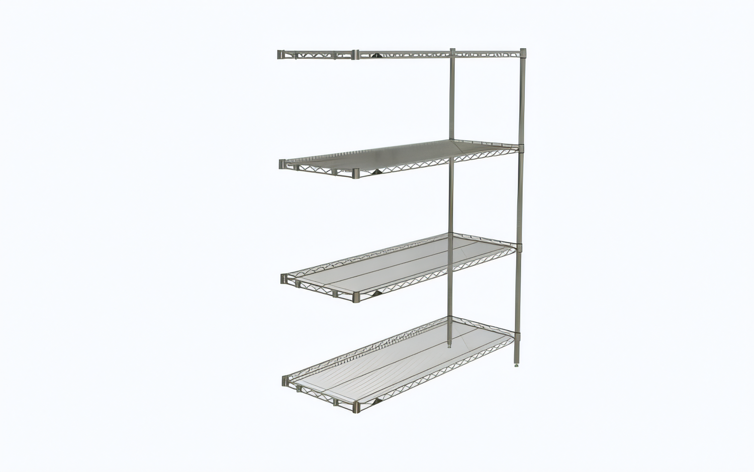 Super Erecta® Add-On Shelving Unit, 48"W x 18"D x 63"H, (4) wire shelves, (2) posts & (2) "S"Hooks per shelf, chrome plated finish, KD, NSF