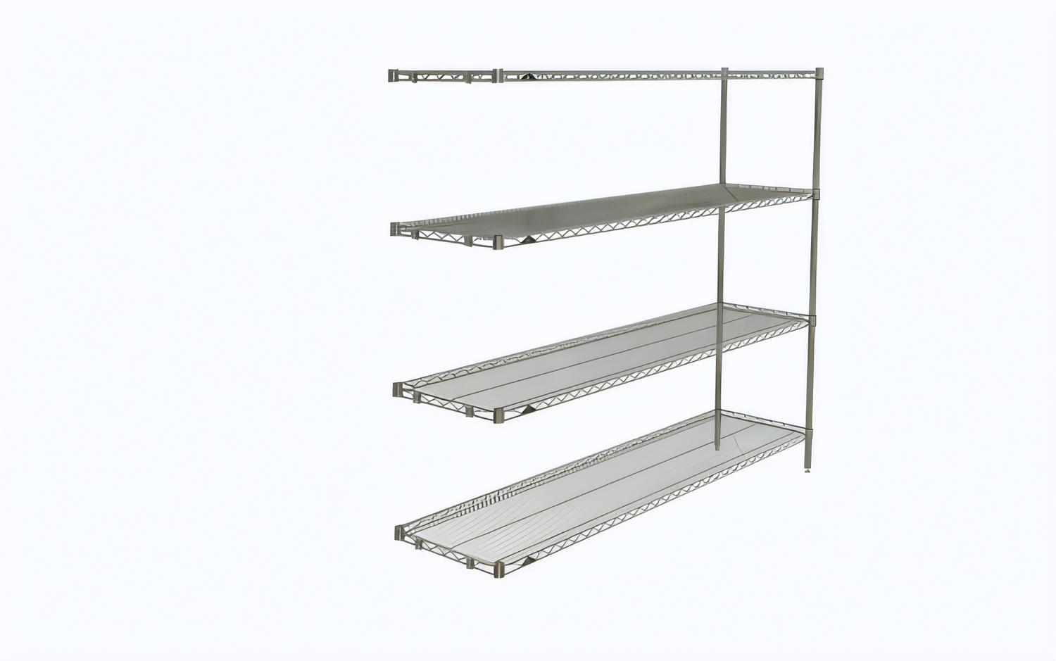 Super Erecta® Add-On Shelving Unit, 72"W x 18"D x 63"H, (4) wire shelves, (2) posts & (2) "S"Hooks per shelf, chrome plated finish, KD, NSF
