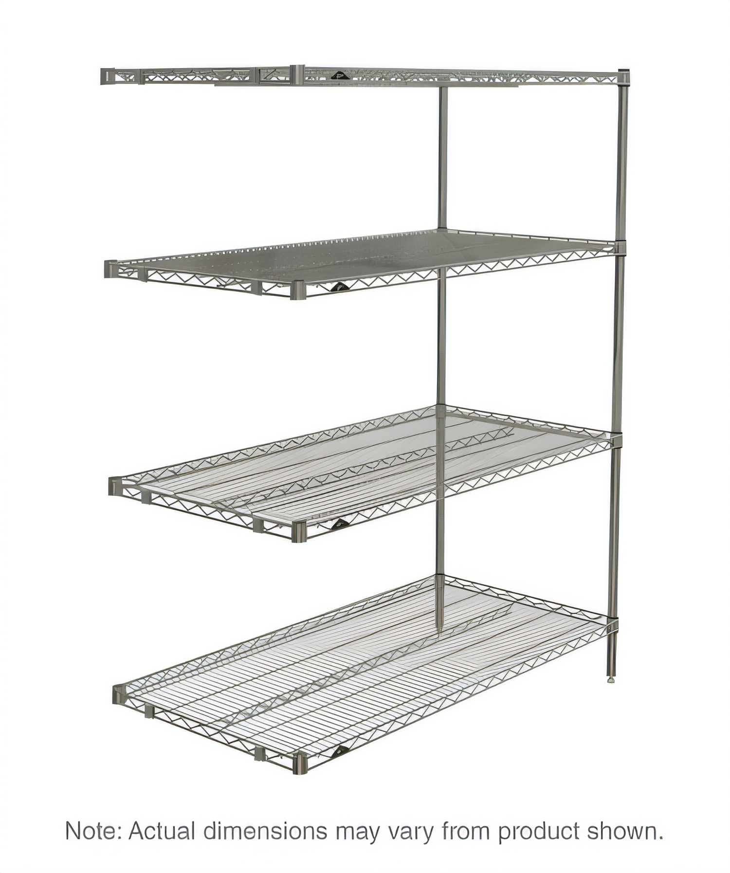 Super Erecta® Add-On Shelving Unit, 42"W x 21"D x 63"H, (4) wire shelves, (2) posts & (2) "S"Hooks per shelf, chrome plated finish, KD, NSF
