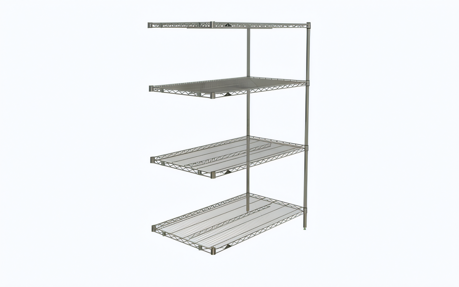 Super Erecta® Add-On Shelving Unit, 42"W x 24"D x 63"H, (4) wire shelves, (2) posts & (2) "S"Hooks per shelf, chrome plated finish, KD, NSF