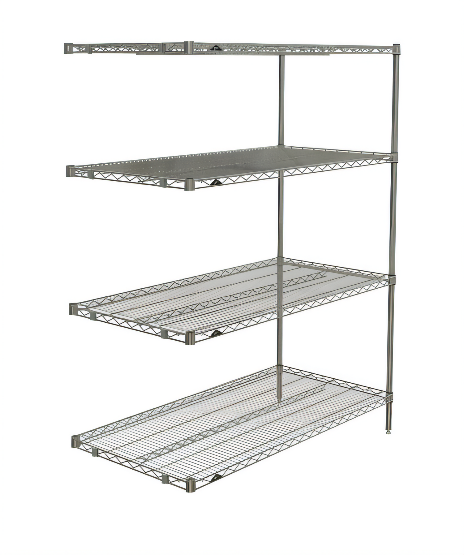 Super Erecta® Add-On Shelving Unit, 48"W x 24"D x 63"H, (4) wire shelves, (2) posts & (2) "S"Hooks per shelf, Super Erecta Brite™ finish, KD, NSF