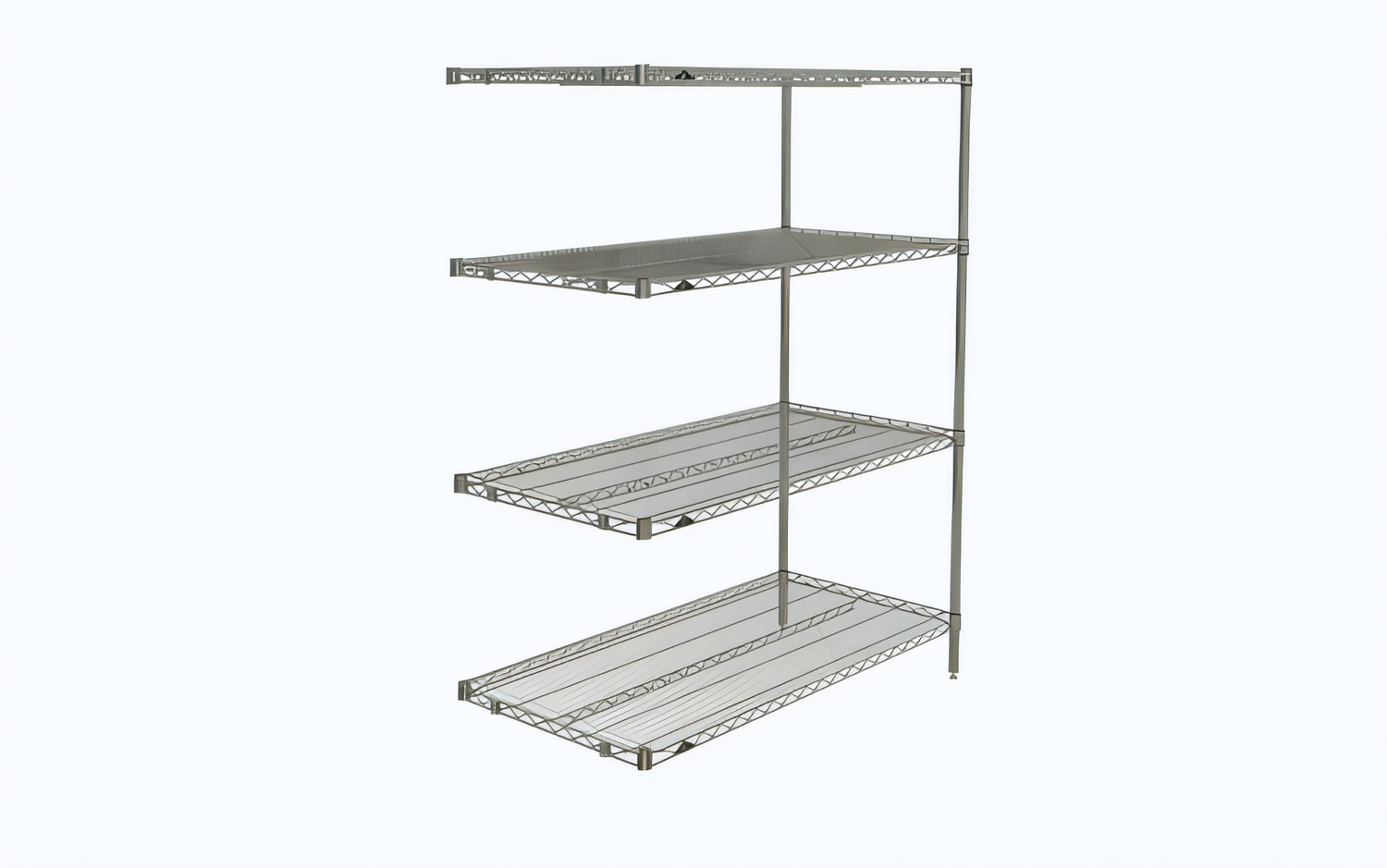 Super Erecta® Add-On Shelving Unit, 48"W x 24"D x 63"H, (4) wire shelves, (2) posts & (2) "S"Hooks per shelf, chrome plated finish, KD, NSF