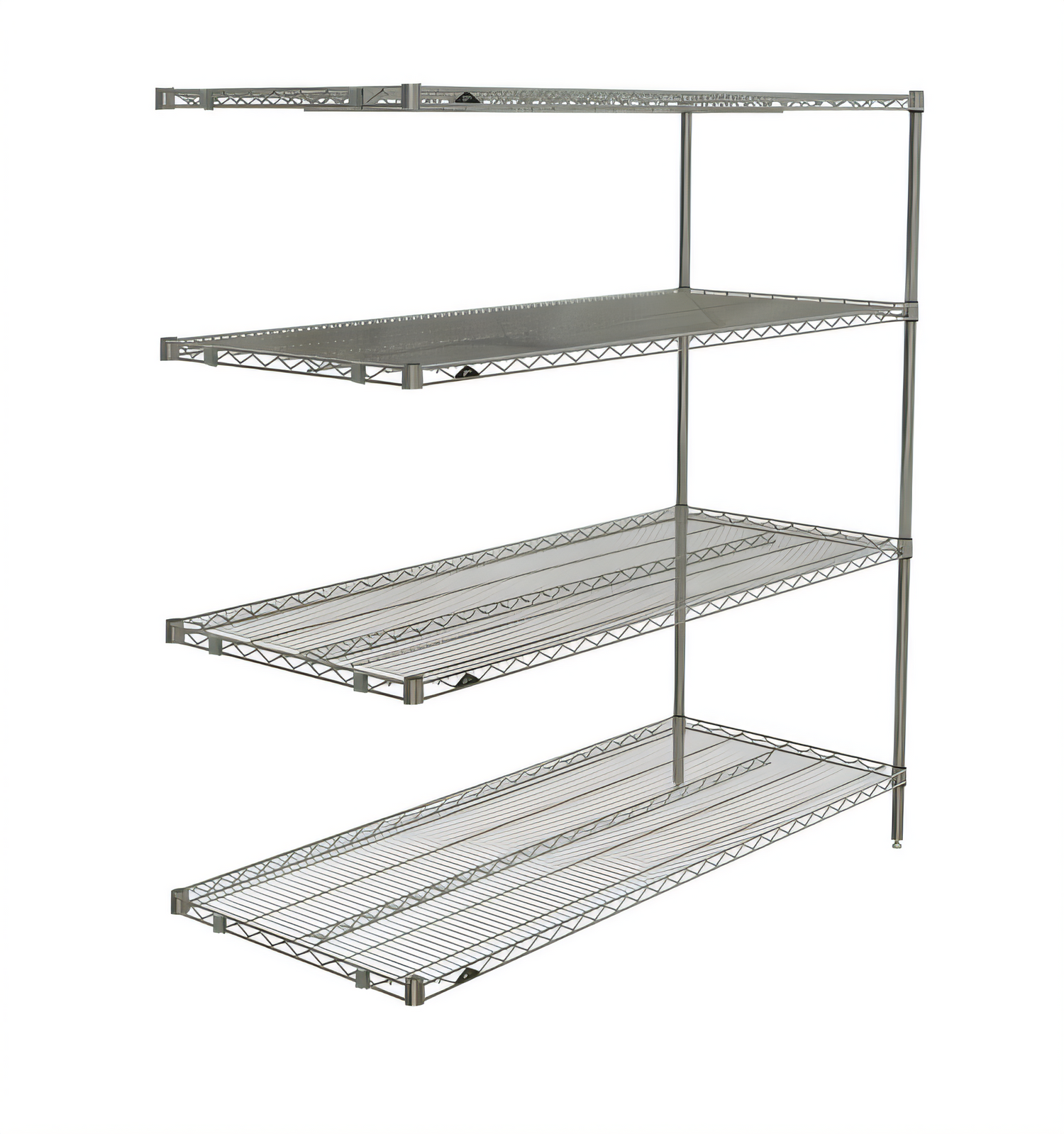 Super Erecta® Add-On Shelving Unit, 60"W x 24"D x 63"H, (4) wire shelves, (2) posts & (2) "S"Hooks per shelf, Super Erecta Brite™ finish, KD, NSF