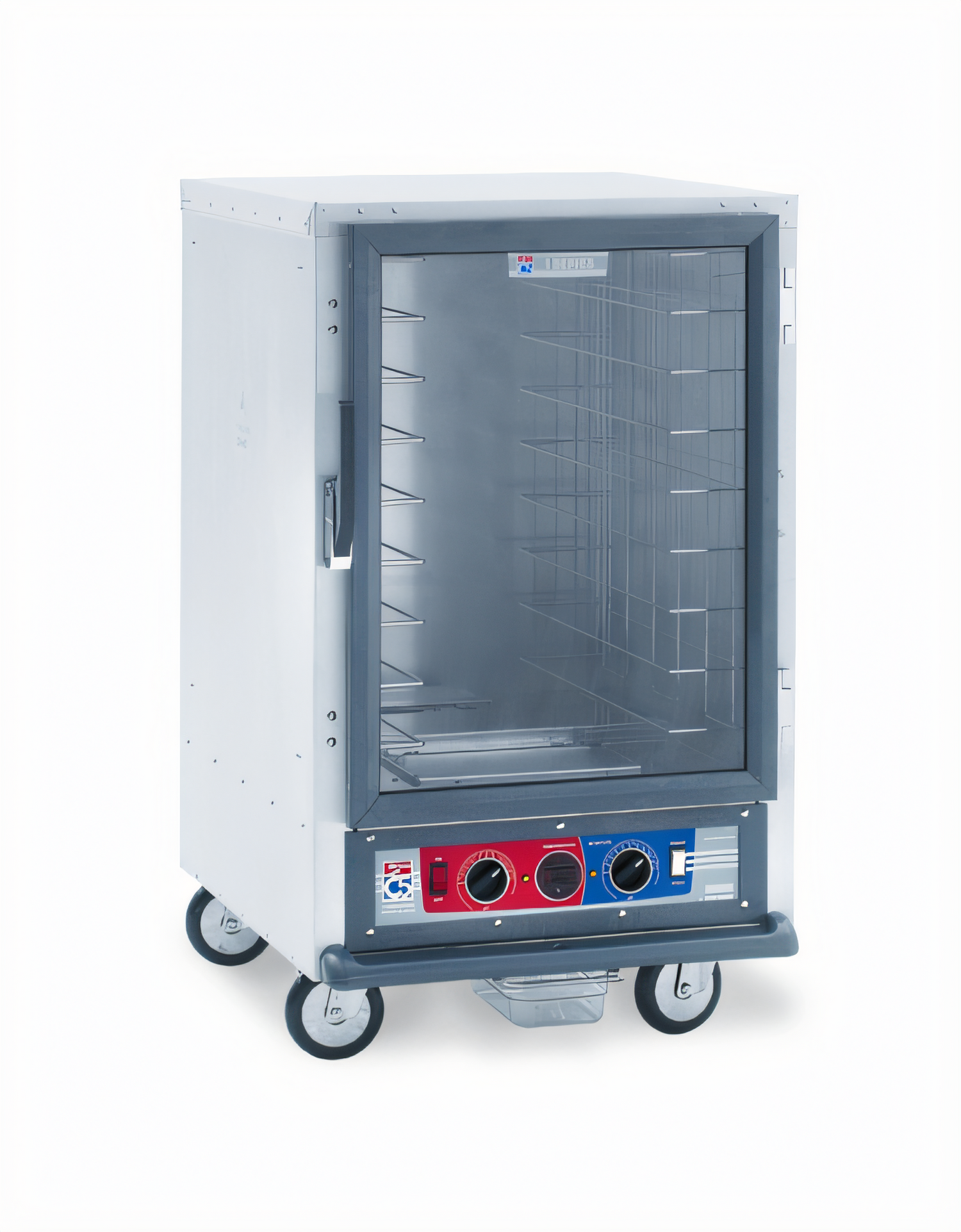C5™ 1 Series Heated Holding & Proofing Cabinet, mobile, half height, non insulated, clear polycarbonate door, removable bottom mount control module, thermostat to 190°F, fixed wire slides on 3" centers (8) 18" x 26" or (16) 12" x 20" x 2 1/2" pan capacity, 5" casters (2 with brakes), aluminum, 120v/60/1 ph, 2000 watts, 16.7 amps, NEMA 5 20P, cULus, NSF