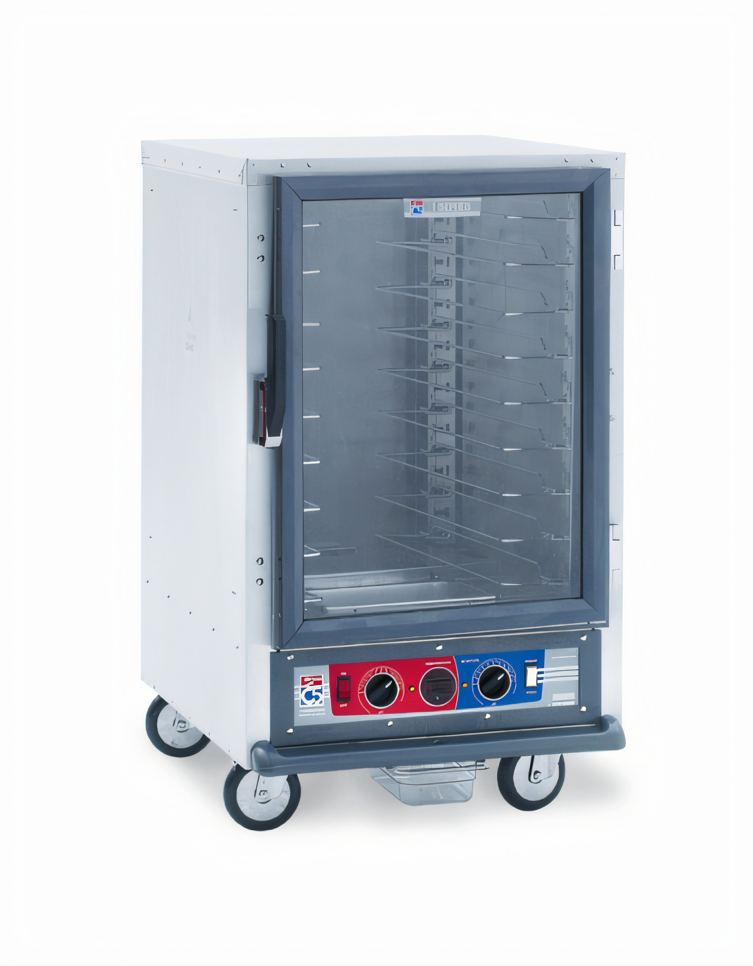 C5™ 1 Series Heated Holding & Proofing Cabinet, mobile, half height, non insulated, clear polycarbonate door, removable bottom mount control module, thermostat to 190°F, universal wire slides on 3" centers, adjustable on 1 1/2" increments (8) 18" x 26" or (16) 12" x 20" x 2 1/2" pan capacity, 5" casters (2 with brakes), aluminum, 120v/60/1 ph, 2000 watts, 16.7 amps, NEMA 5 20P, cULus, NSF