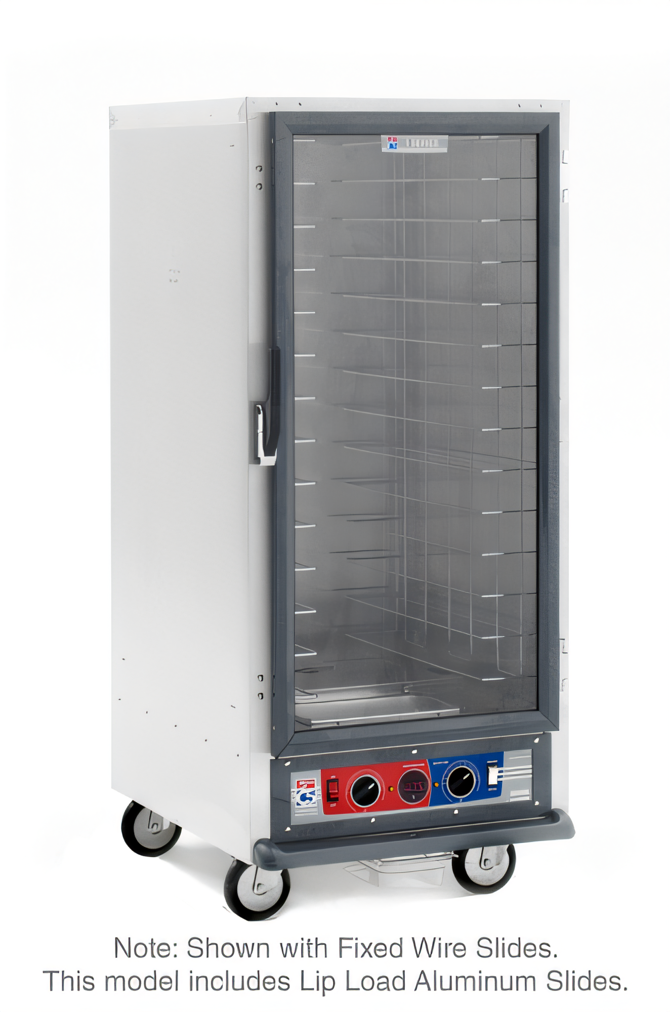 C5™ 1 Series Heated Holding & Proofing Cabinet, mobile, 3/4 height, non insulated, clear polycarbonate door, removable bottom mount control module, thermostat to 190°F, lip load slides on 1 1/2" centers (27) 18" x 26" pan capacity, 5" casters (2 with brakes), aluminum, 120v/60/1 ph, 2000 watts, 16.7 amps, NEMA 5 20P, cULus, NSF