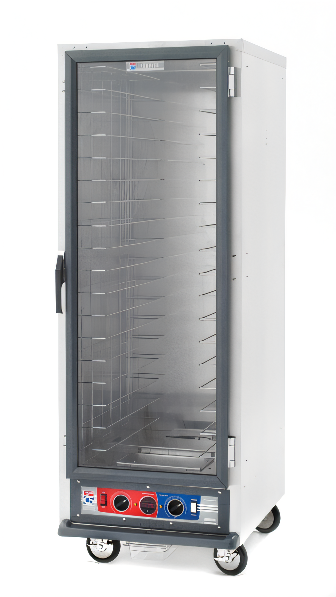 C5™ 1 Series Heated Holding & Proofing Cabinet, mobile, full height, non insulated, clear polycarbonate door, removable bottom mount control module, thermostat to 190°F, fixed wire slides on 3" centers (18) 18" x 26" or (34) 12" x 20" x 2 1/2" pan capacity, 5" casters (2 with brakes), aluminum, 120v/60/1 ph, 2000 watts, 16 amps, NEMA 5 20P, cULus, NSF