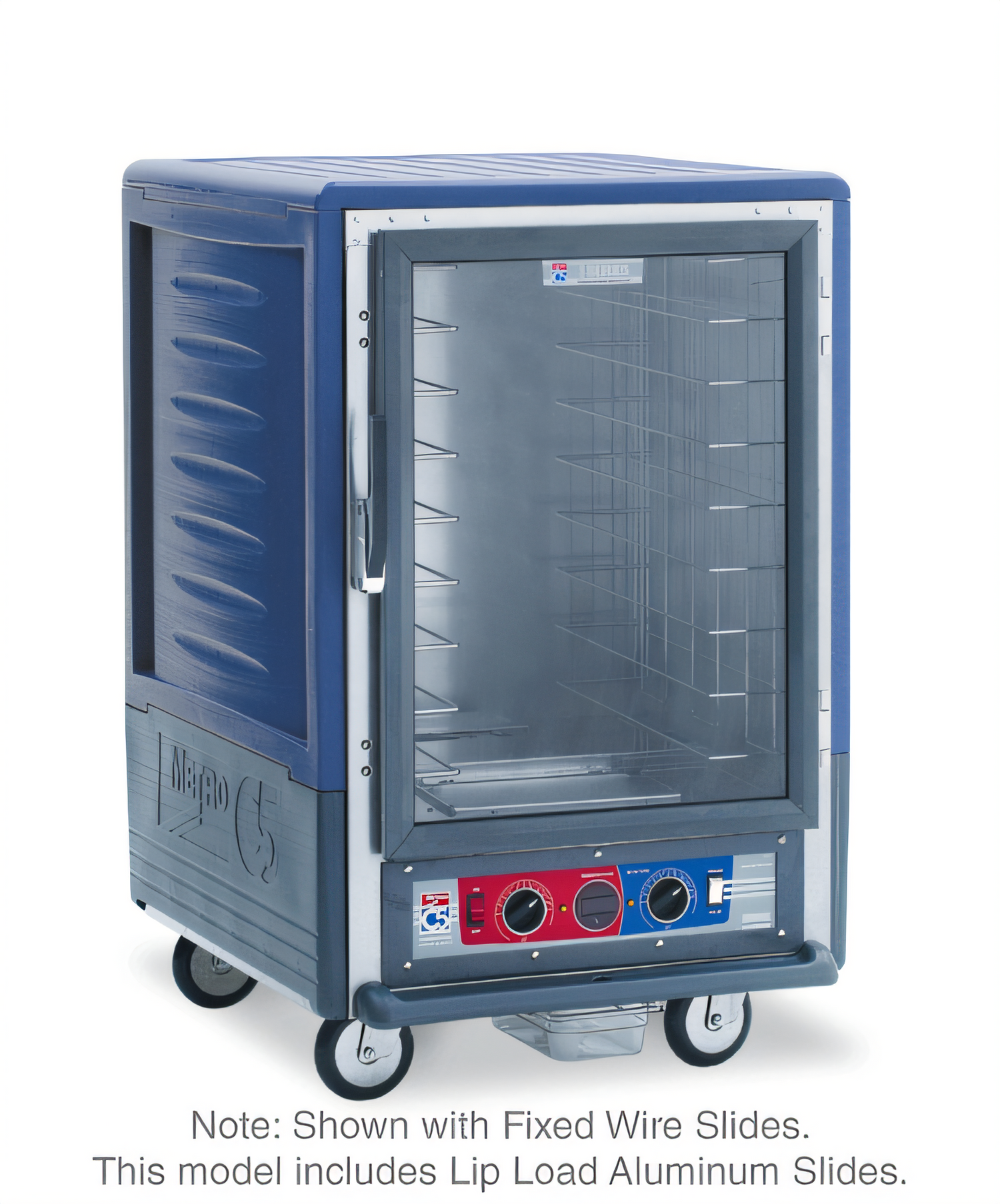 C5™ 3 Series Heated Holding & Proofing Cabinet, with Blue Insulation Armour™, mobile, half height, insulated, clear polycarbonate door, removable bottom mount control module, thermostat to 200°F, lip load slides on 1-1/2" centers (17) 18" x 26" pan capacity, 5" casters (2 with brakes), aluminum, 120v/60/1-ph, 2000 watts, 16.7 amps, NEMA 5-20P, cULus, NSF