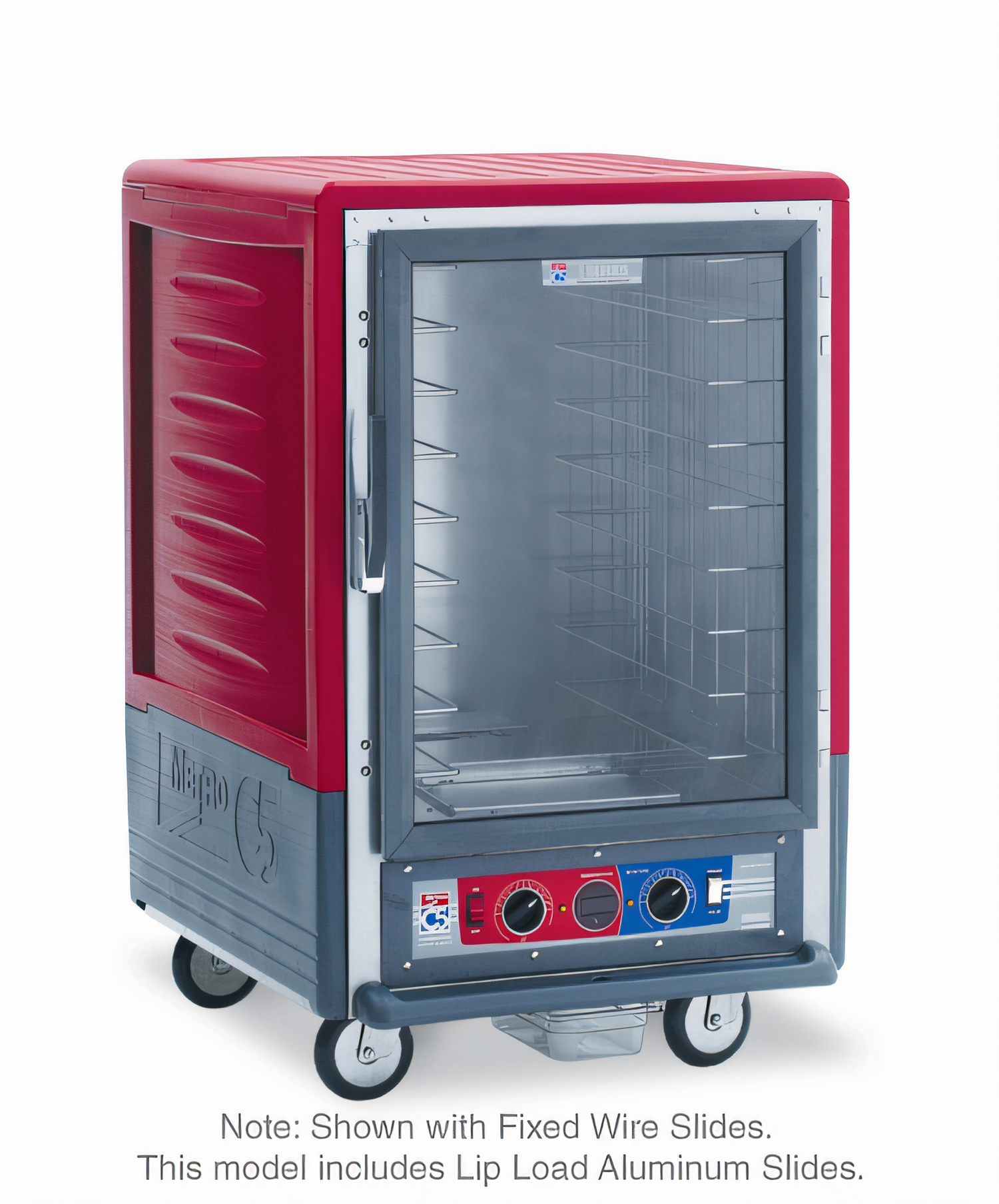 C5™ 3 Series Heated Holding & Proofing Cabinet, with Red Insulation Armour™, mobile, half height, insulated, clear polycarbonate door, removable bottom mount control module, thermostat to 200°F, lip load slides on 1-1/2" centers (17) 18" x 26" pan capacity, 5" casters (2 with brakes), aluminum, 120v/60/1-ph, 2000 watts, 16.7 amps, NEMA 5-20P, cULus, NSF