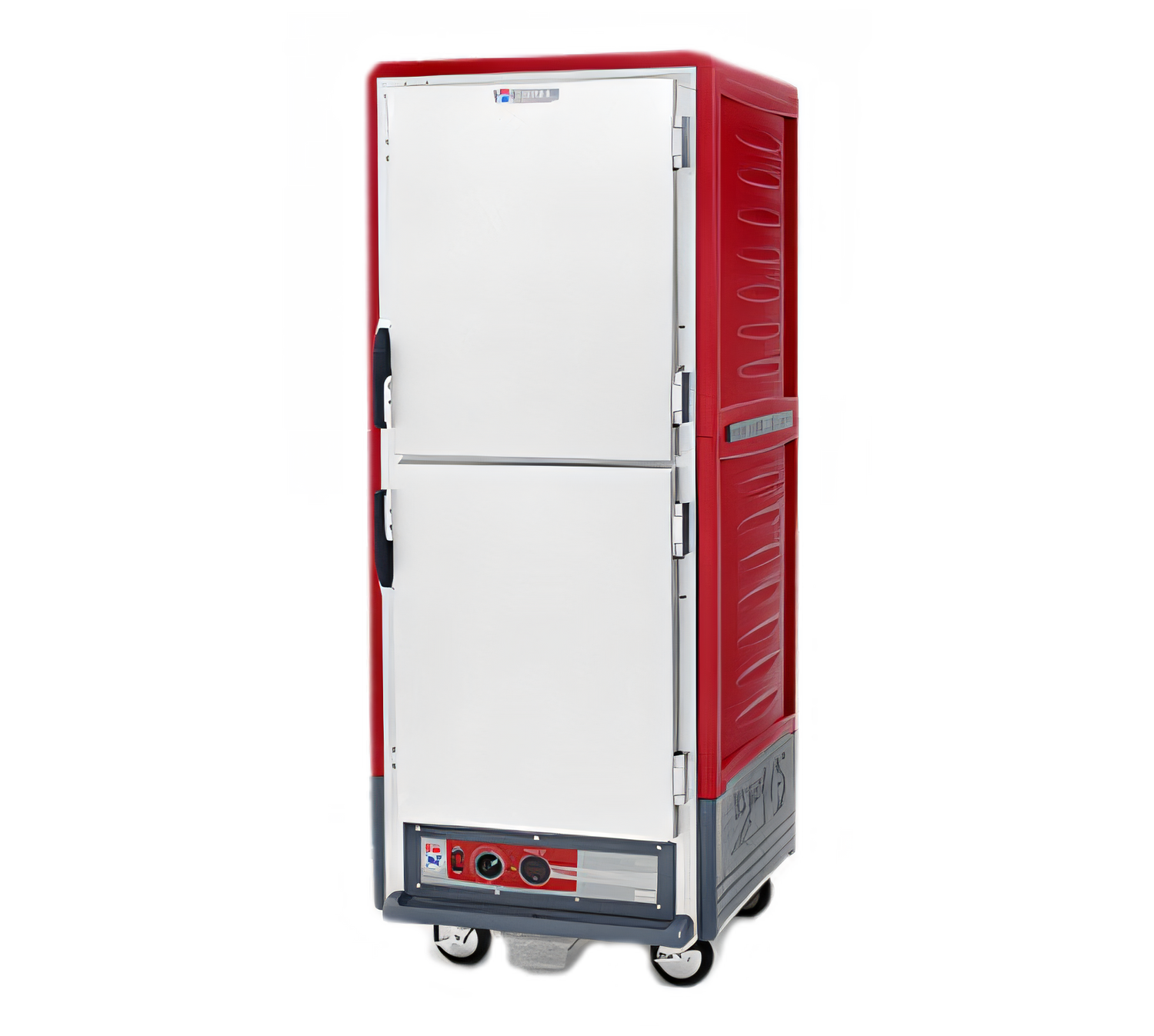 C5™ 3 Series Heated Holding & Proofing Cabinet, lower wattage, with Red Insulation Armour™, mobile, full height, insulated, Dutch insulated aluminum doors, removable bottom mount control module, thermostat to 200°F, universal wire slides on 3" centers, adjustable on 1-1/2" increments (18) 18" x 26" or (34) 12" x 20" x 2-1/2" pan capacity, 5" casters (2 with brakes), aluminum, 120v/60/1-ph, 1440 watts, 12 amps, NEMA 5-15P, cULus, NSF