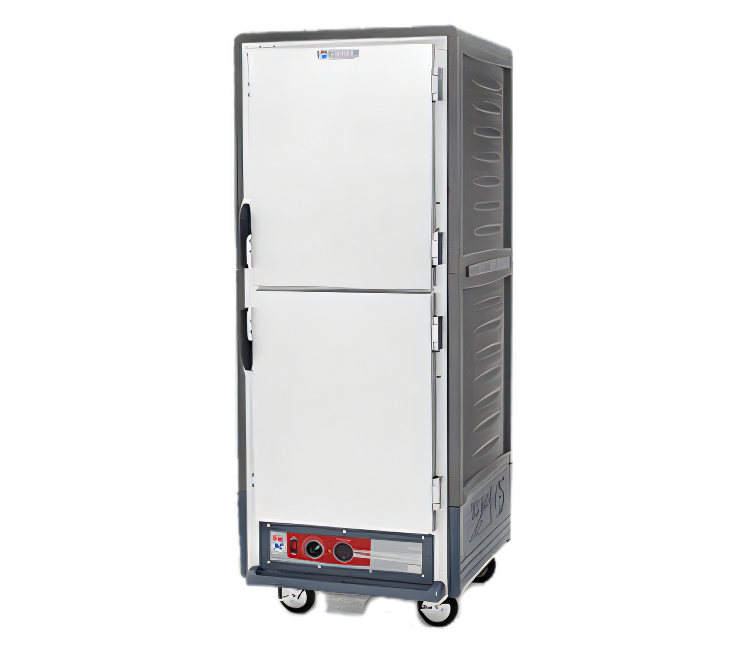 C5™ 3 Series Heated Holding Cabinet, lower wattage, with Grey Insulation Armour™, mobile, full height, insulated, Dutch insulated aluminum doors, removable bottom mount control module, thermostat to 200°F, fixed wire slides on 3" centers (18) 18" x 26" or (34) 12" x 20" x 2 1/2" pan capacity, 5" casters (2 with brakes), aluminum, 120v/60/1 ph, 1440 watts, 12 amps, NEMA 5 15P, UL, CUL, NSF