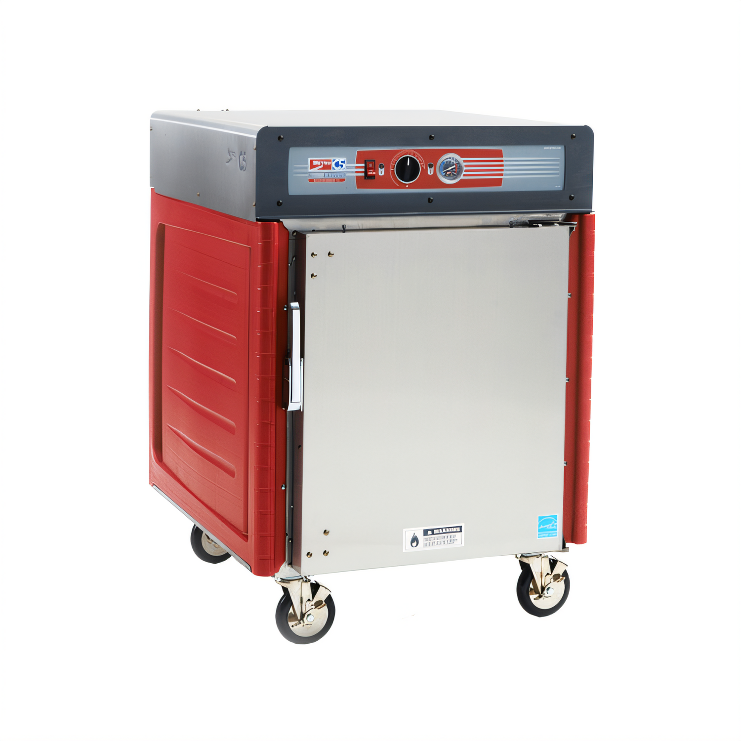 C5™ 4 Series with Insulation Armour™ Plus, mobile heated holding cabinet, half height, insulated solid door, top mount controls, thermostat to 200°F, universal wire slides on 3" centers, adjustable on 1-1/2" increments, (8) 18" x 26" or (16) 12" x 20" x 2-1/2" pan capacity, 5" casters, stainless steel, 120V/60/1, 1400 watts, 11.7 amps, NEMA 5-15P, cULus, NSF, ENERGY STAR®